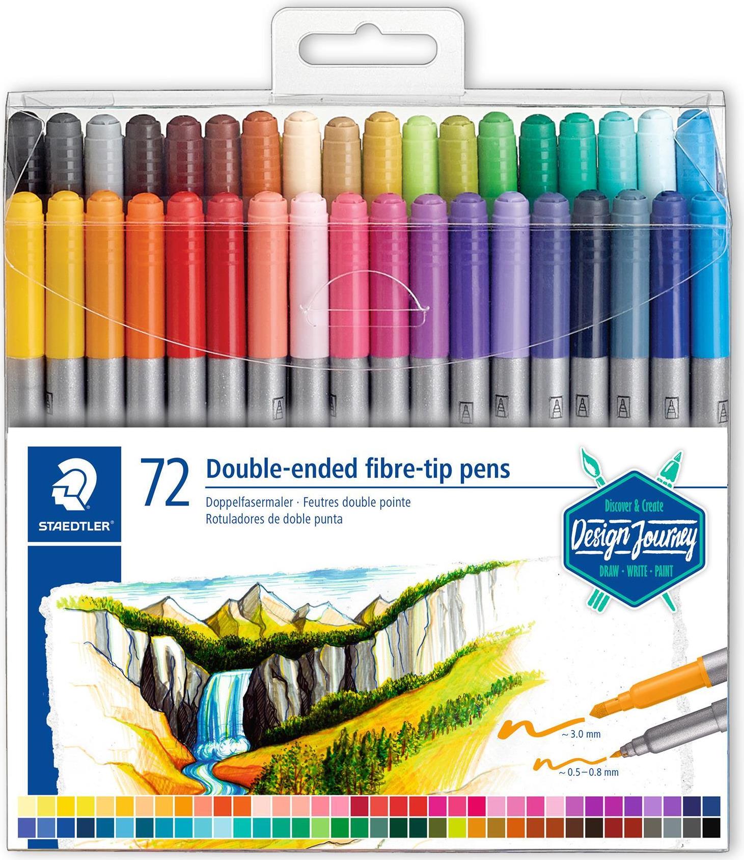 STAEDTLER Doppel-Fasermaler Twin-tip, 72er Kunststoff-Etui 2 Spitzen, Strichstärke: 3.0 mm / 0,5 - 0,8 mm, - 1 Stück (3200 TB72)