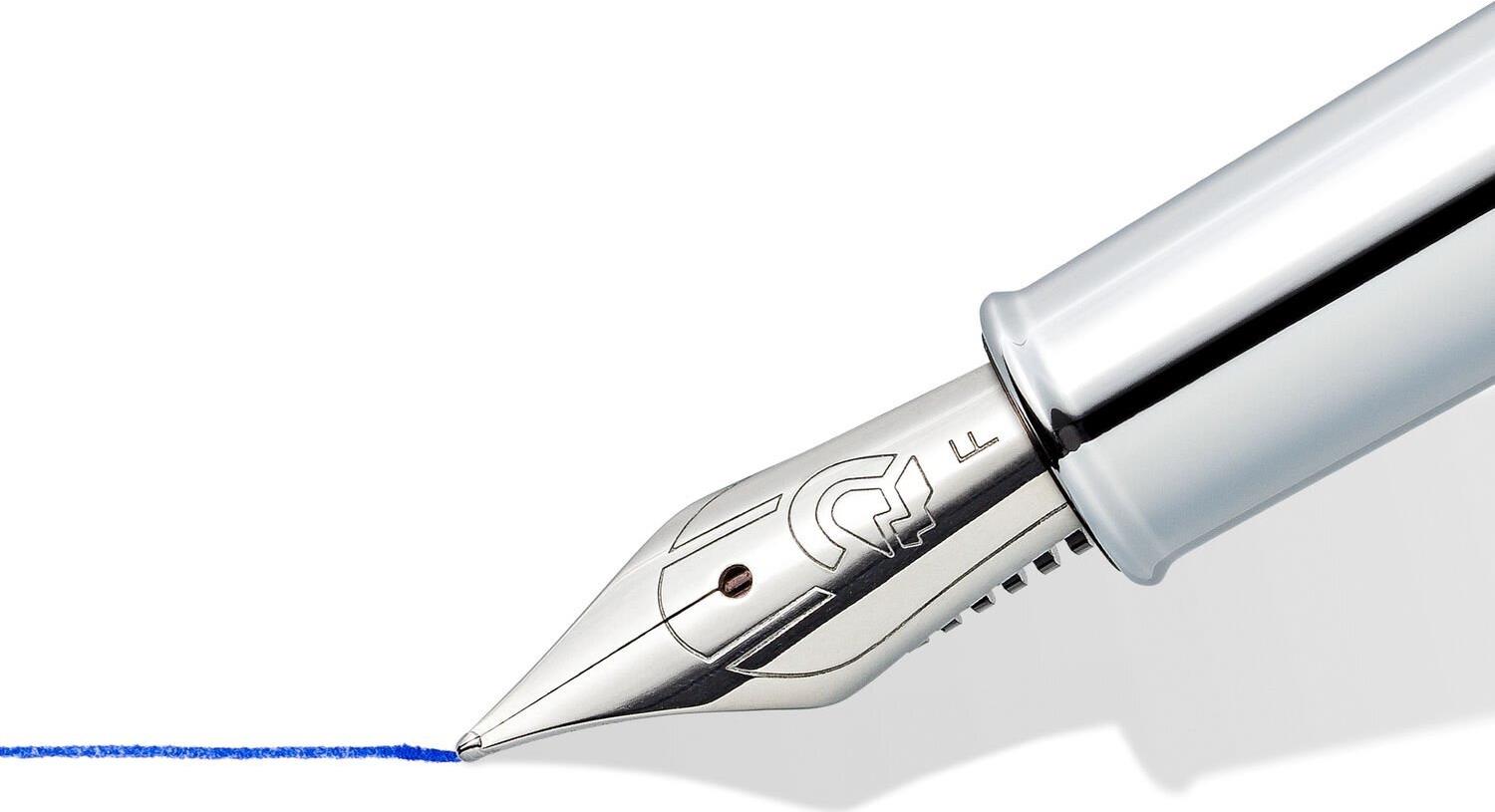 STAEDTLER Füllhalter triplus, Federbreite: F, rot Vollmetall-Schaft, ergonomische Dreikantform, mit Clip & - 1 Stück (474 F02-3)