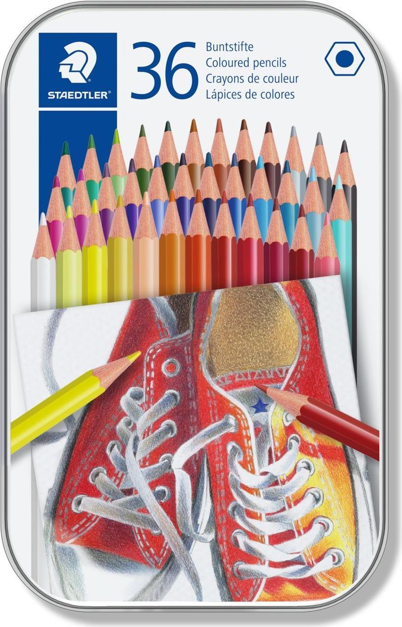 STAEDTLER Hexagonal-Buntstift, 36er Metall-Etui sechseckig, poliert in Farbe der Mine, Minenstärke: 3.0 mm, - 1 Stück (175 M36)