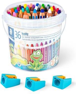 STAEDTLER Hexagonal-Buntstift buddy, 36er Eimer + Spitzer Der ideale erste Kinderbuntstift! 7,60cm (3") 1: Bunt-, Wachsmal - 1 Stück (140 C36)