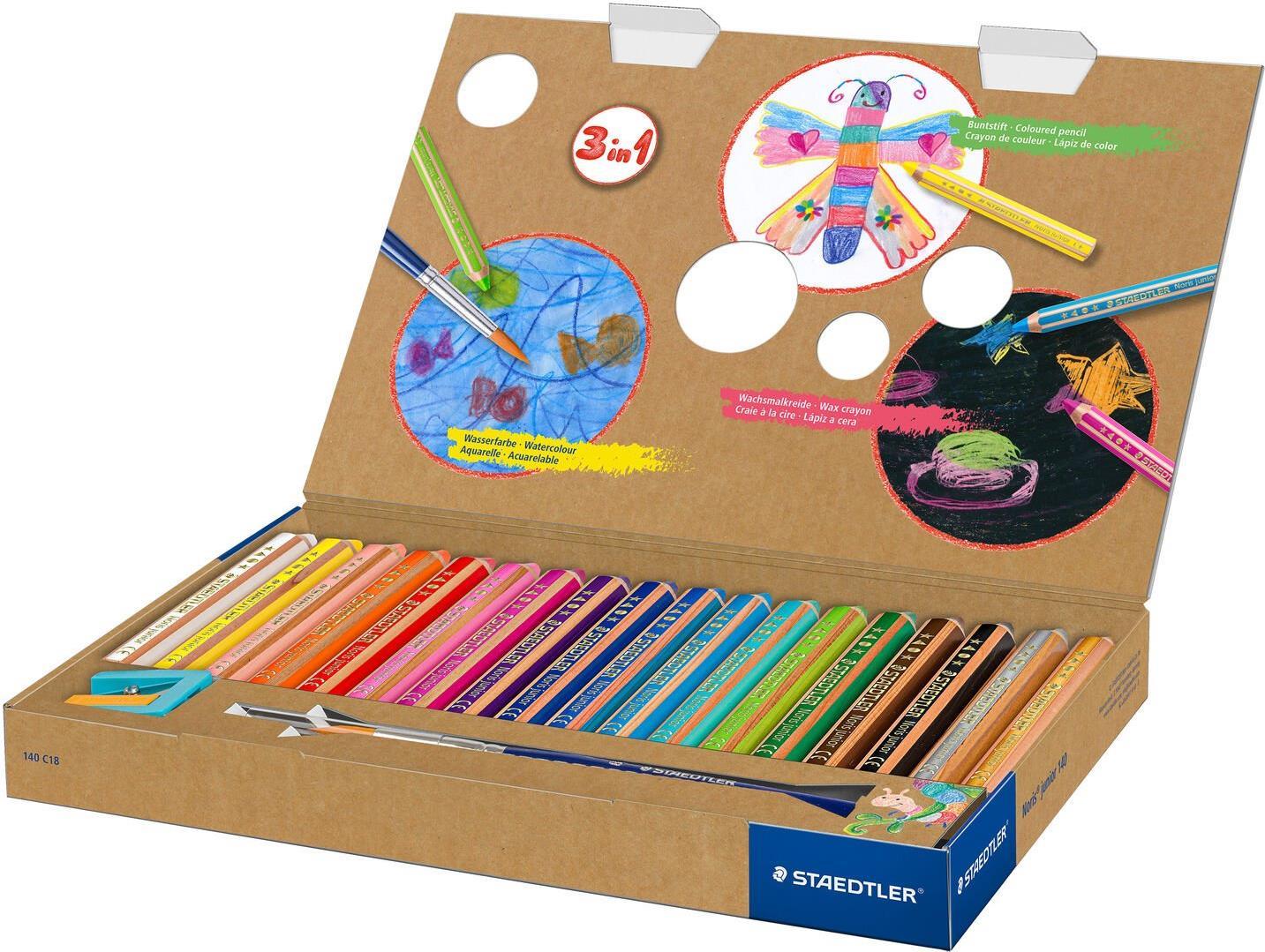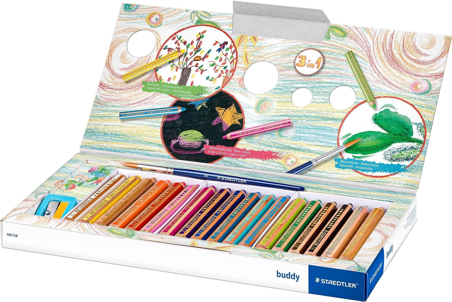 STAEDTLER Hexagonal-Buntstift buddy,18er Kartonetui +Spitzer Der ideale erste Kinderbuntstift! 7,60cm (3") 1: Bunt-, Wachsmal - 1 Stück (140 C18)