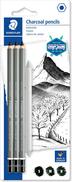 STAEDTLER Kohlestift Mars Lumograph charcoal, 4er Blister Sechskantstift, grau-matt lackiert, mit Tauchkappe, Länge: - 1 Stück (100C SBK4)