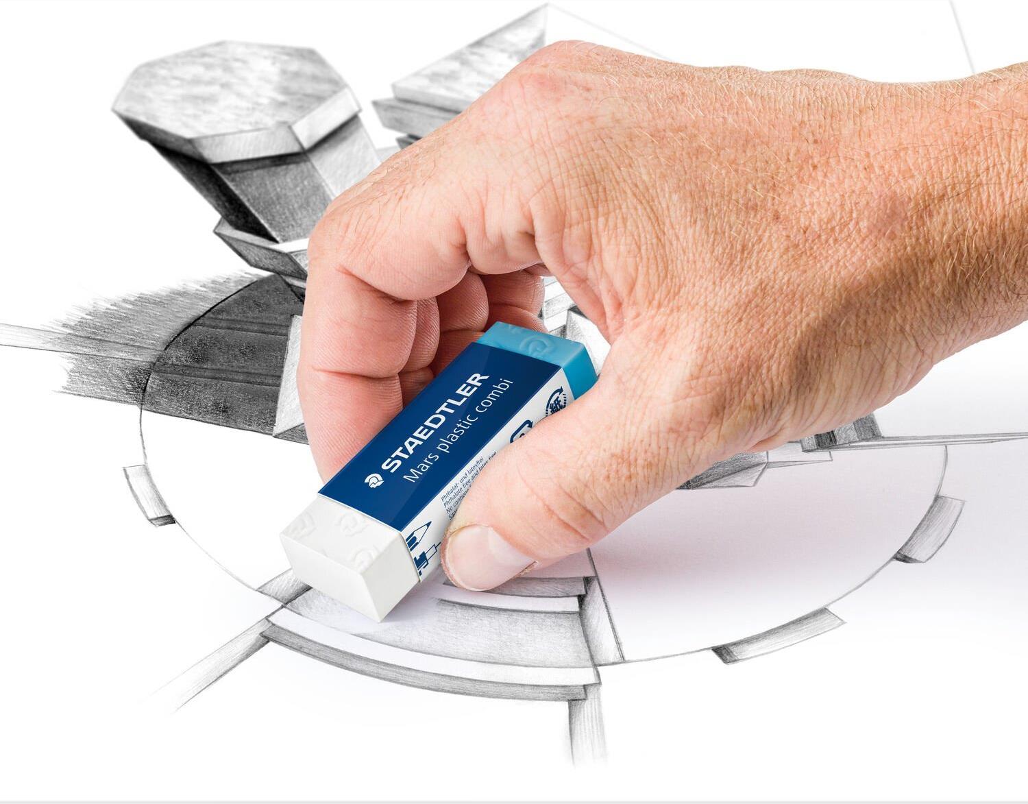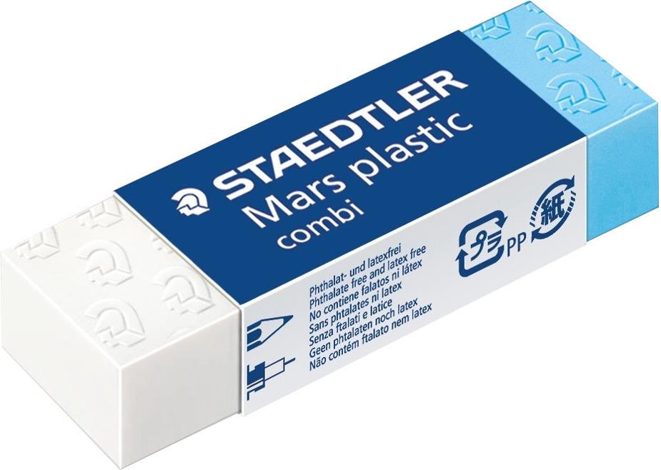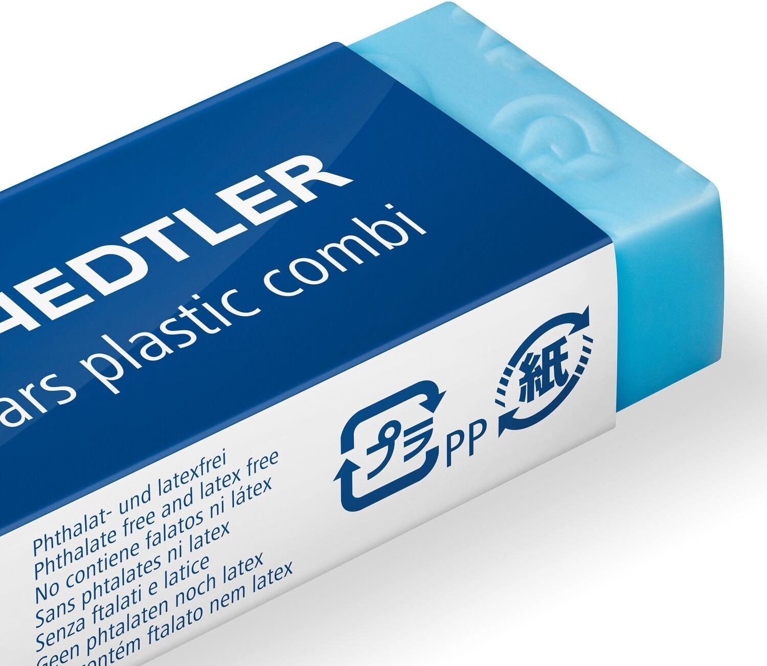 STAEDTLER Radierer Mars® plastic combi, mit Kartonhülle, Kunststoff, blau/weiß 1 Stück (526 508)