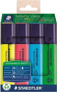 STAEDTLER Textmarker "Textsurfer classic", 4er Etui Gehäuse aus 97% recyceltem Plastik gemäß ISO 14021, - 1 Stück (364 RC4)