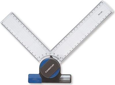 STAEDTLER Zeichenkopf Mars, für Zeichenplatten Mars Einhandbedienung, Stop/Go-Drucktaste für beliebige Winkel- feststellung und Freilauf, 2 transparente Linealschenkel mit beidseitigen gegenläufigen Skalen, ...
