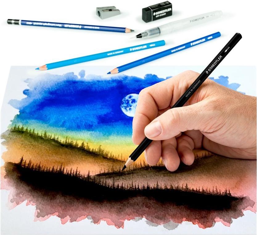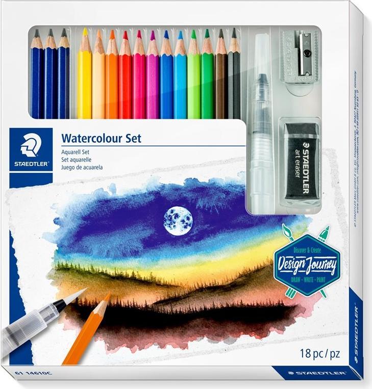 STAEDTLER Zeichenset Watercolour Design Journey, 18-teilig für klassische aquarelierte Zeichnungen & Skizzen, - 1 Stück (61 14610C)