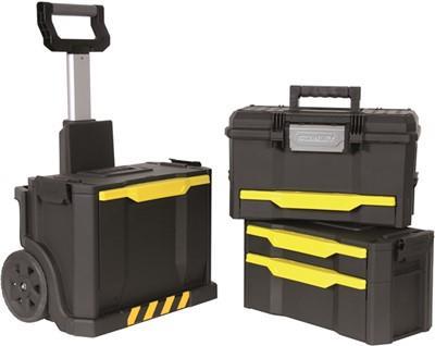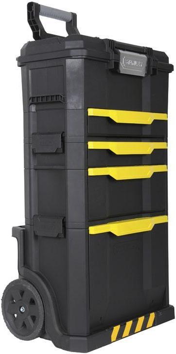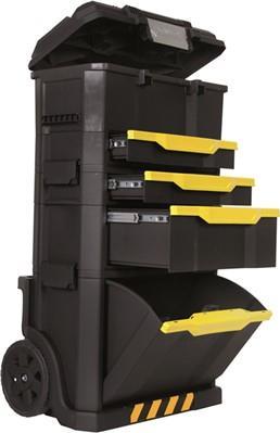 Rollende Werkstatt Stanley 3-in-1Modular aufgebaute Rollende Werkstatt (Rolling Workshop&trade ) aus robustem Kunststoff. Vielseitige Organisation. Rolling Workshop mit drei entnehmbaren, tragbaren Werkzeugboxen mit Schnellverschluß. Robuster und