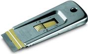 GlasschaberAusstattung: Robuster Halter aus rostfreiem EdelstahlKlinge kann einfach herausgeschoben und fixiert werdenErsatzklingen leicht auswechselbarZum Entfernen von Farb- und Plakatresten usw. auf Glas, Türen, Fliesen u