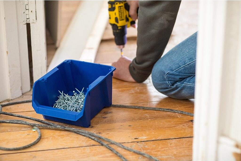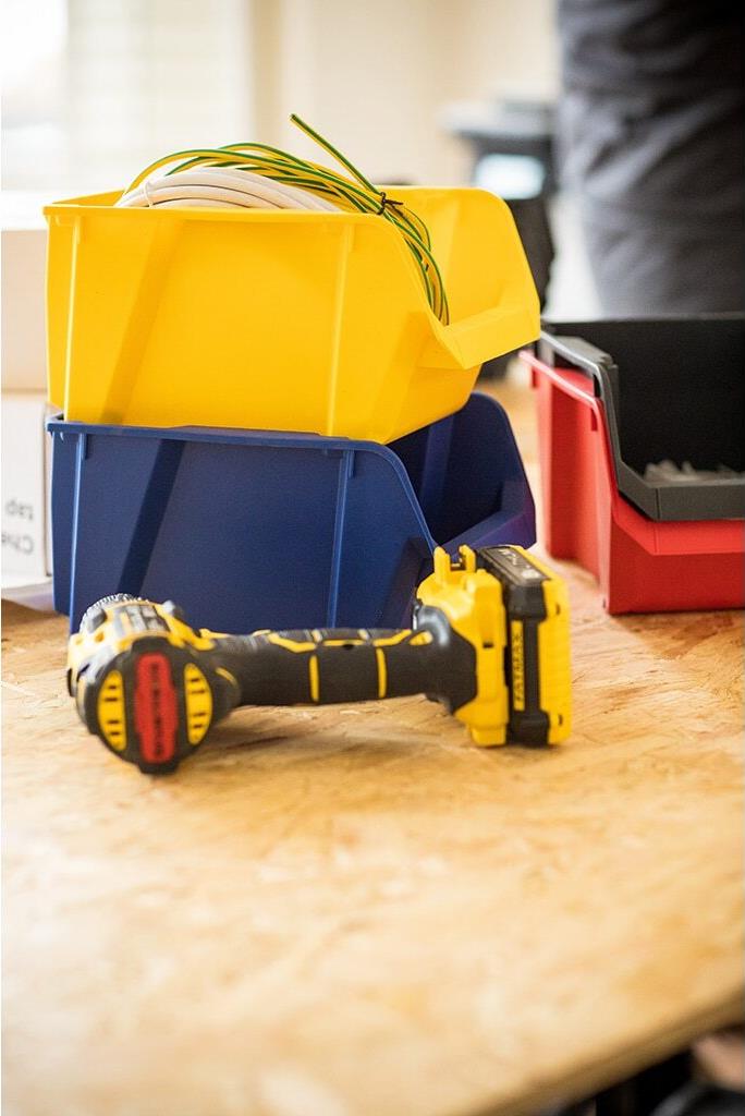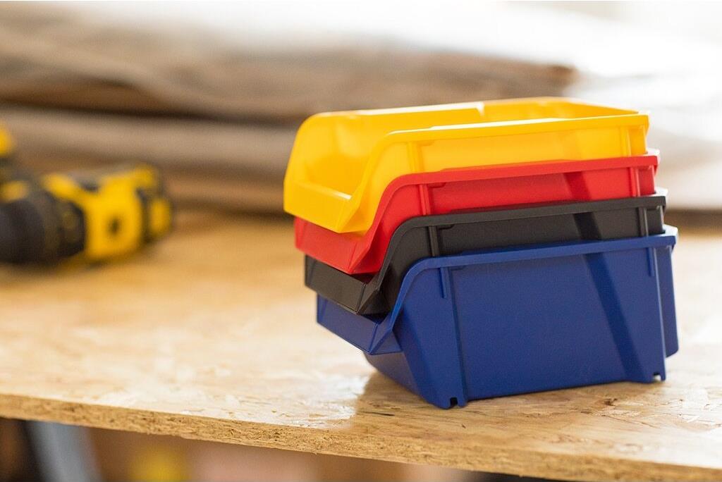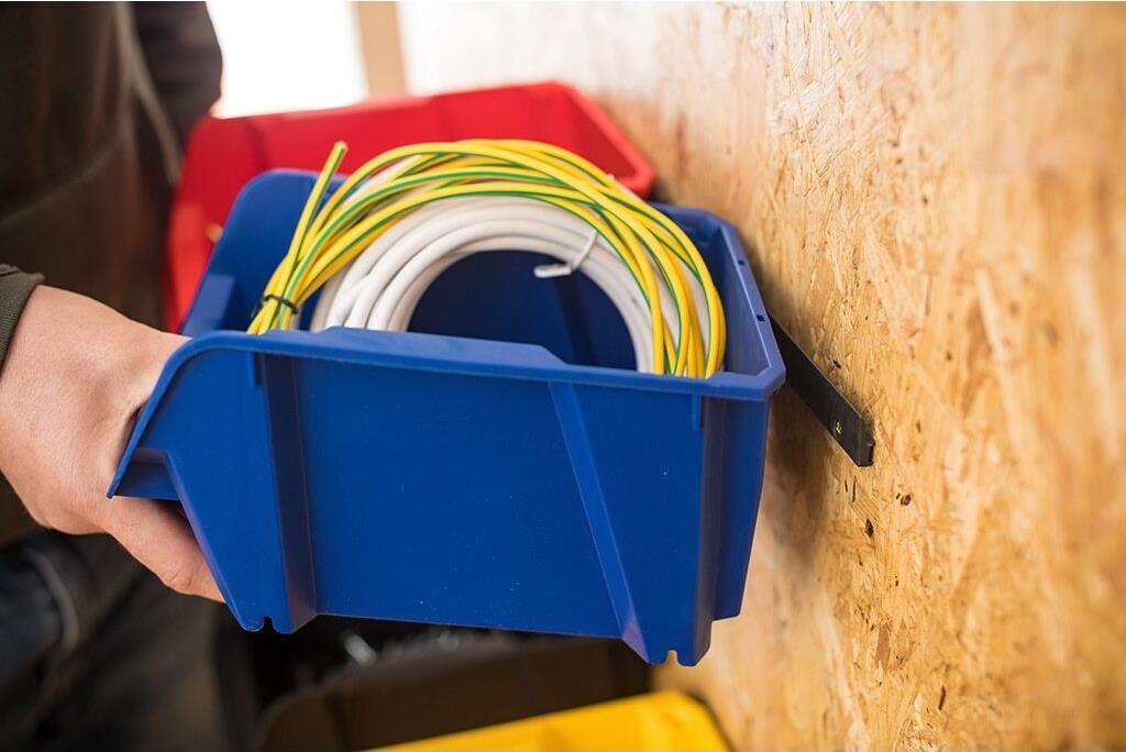 AUSSTATTUNG UND PRODUKTVORTEILE- Neues, modernes Design aus schlagfestem Polypropylen- Kästen können mit Zugriff auf Inhalte gestapelt werden.- Praktische Aufbewahrung: Können an der Wand montiert werden (Schienen nicht ...