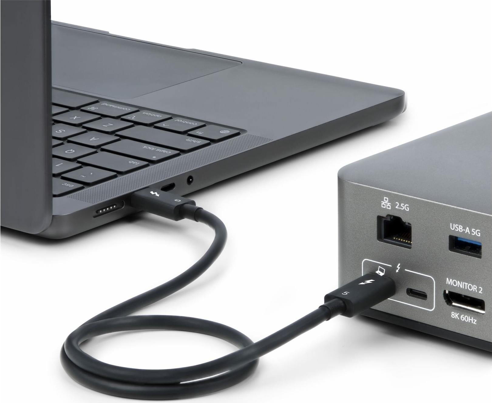 Dieses zertifizierte Thunderbolt 5 Kabel unterstützt die volle Thunderbolt 5 Leistung: