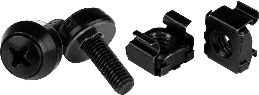 | Produktbeschreibung | StarTech.com 50 Stück 10-32 Server Rack Käfigmuttern und Schrauben mit Unterlegscheiben - Rack Montagematerial - Clip/Muttern und Schrauben für quadratische Löcher - Schwarz - TAA (CABSCREW1032) - Schrauben für Rack |