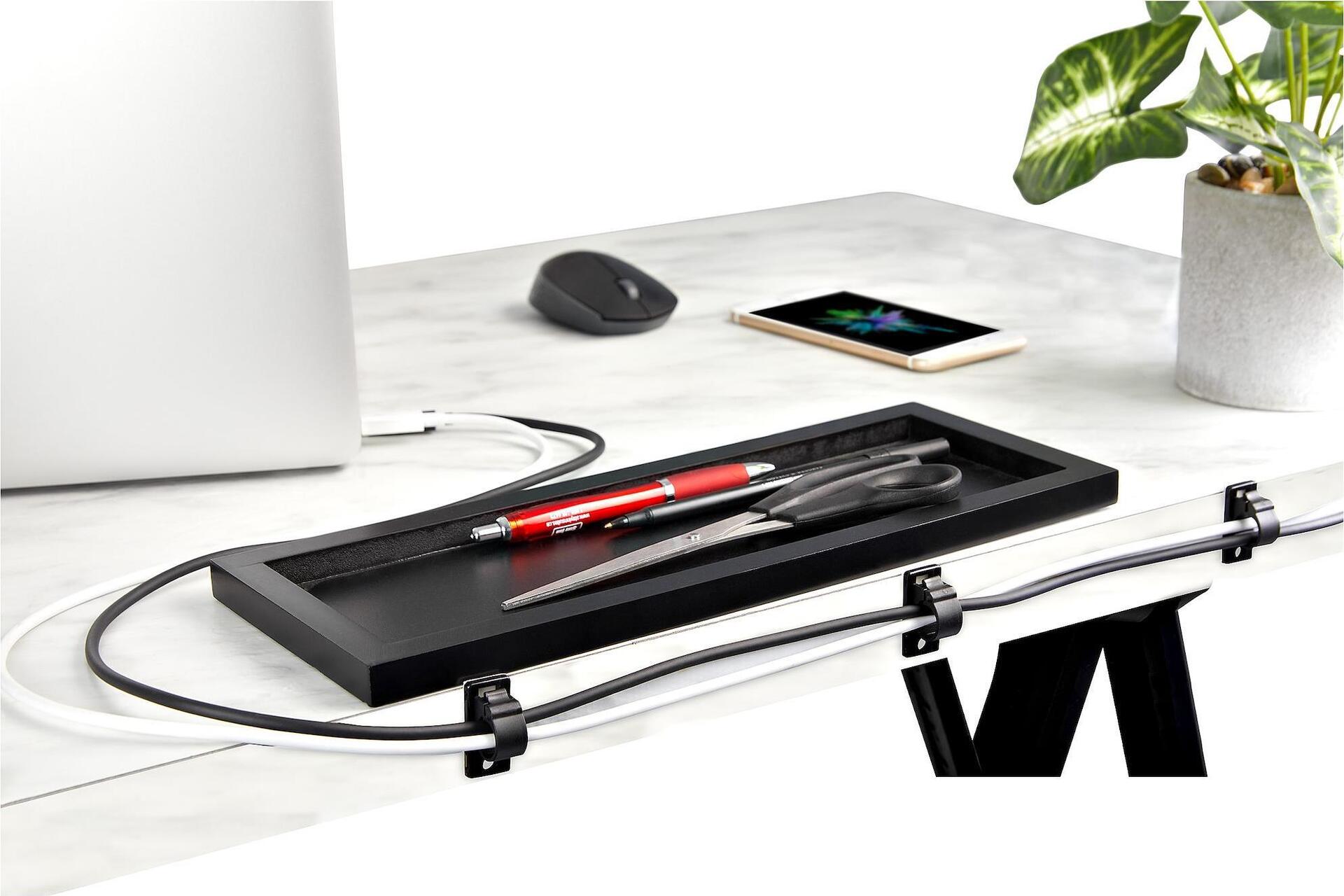 Diese selbstklebenden, einteiligen schwarzen Kabelklemmen bieten eine einfache Möglichkeit, Kabel an mehreren Positionen zu befestigen und zu organisieren. 100 schwarze Kabelclips sind im Lieferumfang enthalten, sodass Sie genügend zur Hand haben.