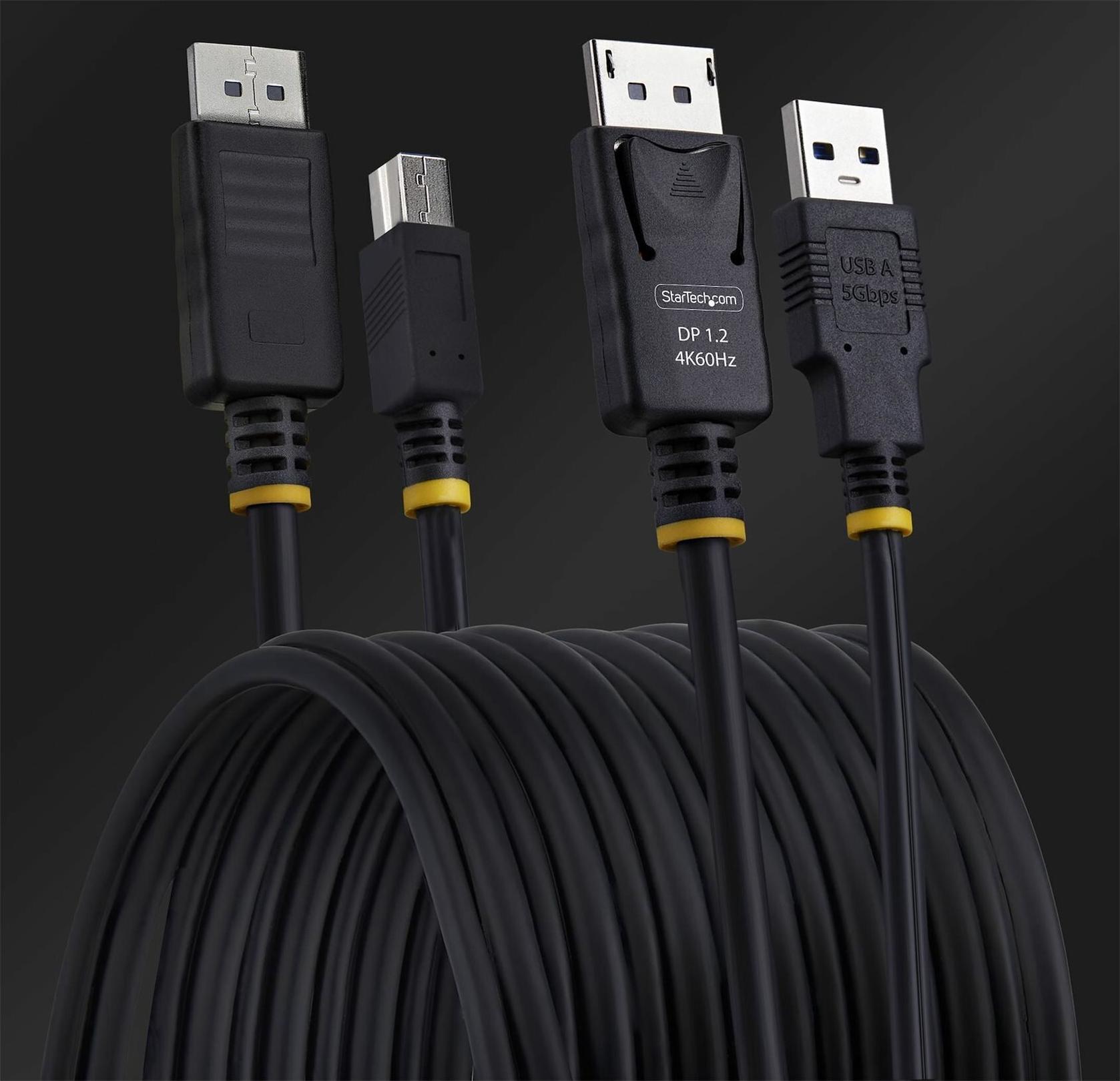Das KVM-Kombikabel ist DisplayPort 1.2-kompatibel und unterstützt Auflösungen bis zu 4K bei 60Hz, HDR10 und DisplayPort-Audio für ein hochwertiges Audio-/Videoerlebnis. Der USB 3.0 Typ-A auf Typ-B Anschluss bietet schnelle Datenübertragungsgeschwindigkeiten von bis zu 5Gbps.