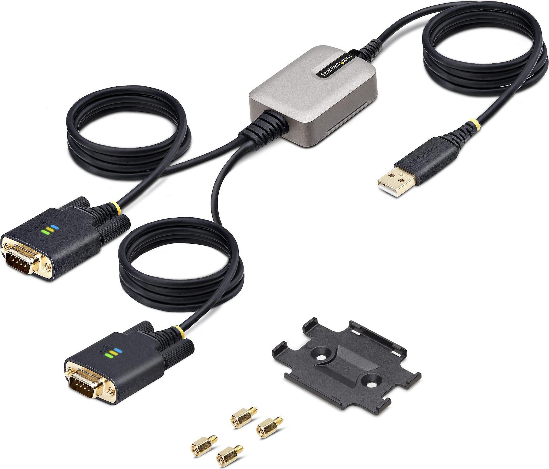Der 2-Port USB-Seriell-Adapter erweitert einen Desktop- oder Laptop-Computer um zwei serielle RS-232 DB/DE-9-Anschlüsse (männlich) über einen USB-Port vom Typ A. Befestigen Sie den Adapter an einem seriellen Gerät mit den vorinstallierten und abnehmbaren geschlitzten D-Sub-Rändelschrauben oder installieren Sie die mitgelieferten DB-9-Muttern, um die Kompatibilität mit anderen seriellen Geräten oder Kabeln zu gewährleisten.
