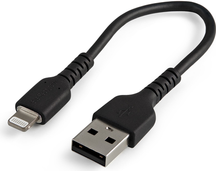 | Produktbeschreibung | StarTech.com 15cm Durable USB A to Lightning Cable - Black USB Type A to Lightning Connector Charge & Sync Power Cord - Rugged w/Aramid Fiber - Apple MFI Certified - iPad Air iPhone 12 (RUSBLTMM15CMB) - Lightning-Kabel - 15 cm |