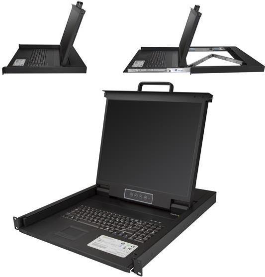 Diese Rack-KVM-Konsole bietet vollständige Steuerung über Tastatur, Monitor und Maus für einen einzelnen oder mehrere Server, die über einen separaten KVM-Switch verbunden sind (separat erhältlich). Die 19\"-Konsole findet in 1 HE eines Racks Platz und stellt eine platzsparende Lösung für eine vollständige Konsolensteuerung dar.