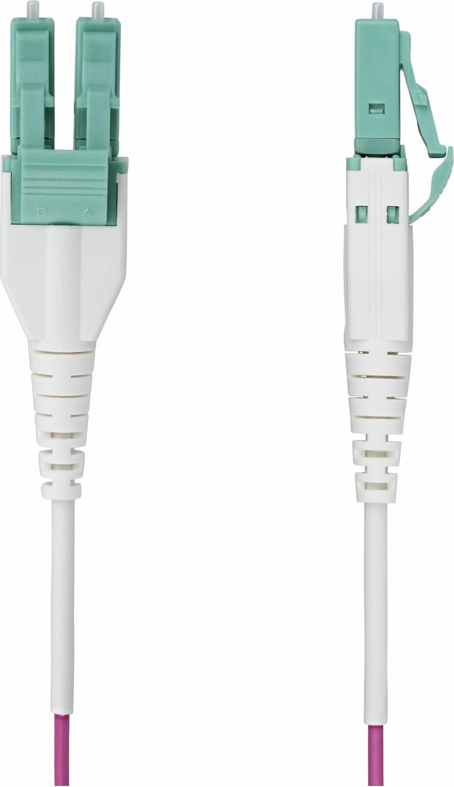 Das 1 m (3,3 ft) lange LC/LC (UPC) OM4 Multimode-Glasfaserkabel bietet eine zuverlässige Lösung für Hochgeschwindigkeitsverbindungen. Dieses Patchkabel wurde mit laseroptimierter Multimode-Faser entwickelt und unterstützt Datenraten von bis zu 100 Gbit/s, wodurch es sich für anspruchsvolle Anwendungen eignet. Dank der OM4-Konformität gewährleistet es eine effiziente Leistung über kurze Entfernungen. Das Kabel verfügt an beiden Enden über langlebige LC/UPC-Duplex-Stecker, die für robuste Verbindungen sorgen. Der flammhemmende Mantel und die Zugentlastung tragen zur Sicherheit und Langlebigkeit bei, während der Biegeradius von 7,5 mm eine einfache Installation in engen Räumen ermöglicht. Dieses Glasfaserkabel ist außerdem für den Betrieb in einem breiten Temperaturbereich ausgelegt und gewährleistet so eine konstante Leistung in verschiedenen Umgebungen.