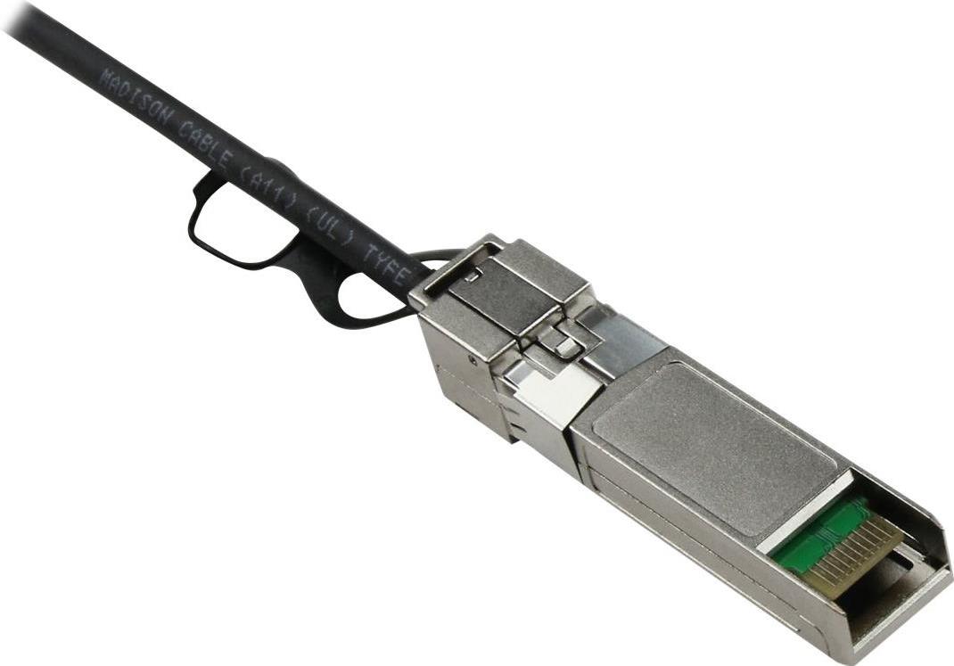 Dieses Low-Power-SFP+-Kabel mit geringer Latenz bietet eine kostengünstige Highspeed-Alternative zu Glasfaserkabeln für Anwendungen über kurze Distanzen wie Point-to-Point-Verbindungen im Rack für Netzwerkswitches oder Server.