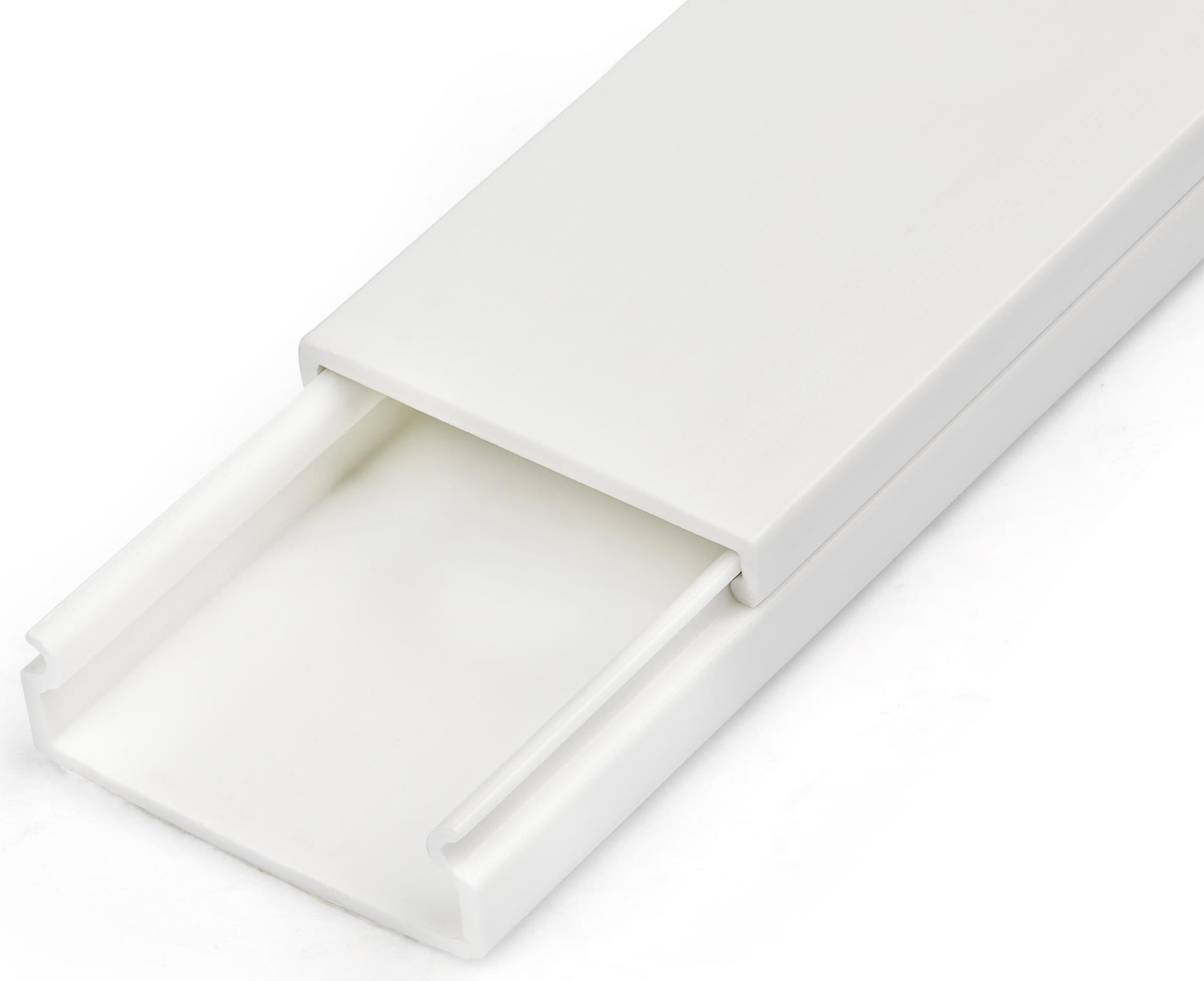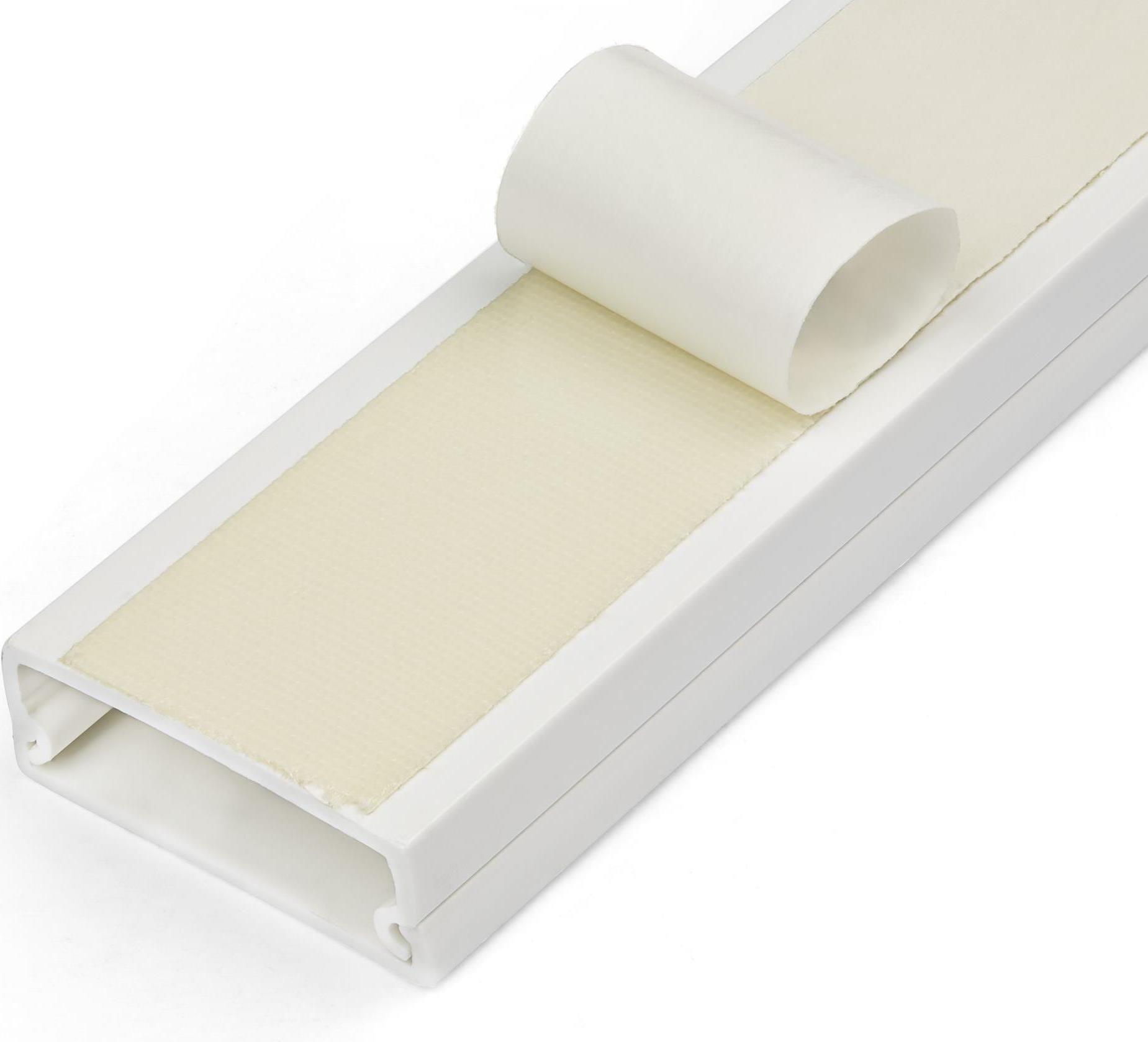 Mit einer selbstklebenden Rückseite kann der Kabelkanal einfach durch Abziehen der Schutzfolie und Aufkleben an der gewünschten Stelle auf jeder Oberfläche, einschließlich Holz, Trockenbau, Glas oder Mauerwerk, installiert werden.