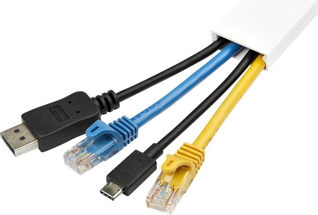 Dieser 1m lange Kabelkanal mit Klebeband sorgt für eine saubere Kabelführung in Ihrem Büro oder Serverraum und verdeckt gleichzeitig die Kabel, um ein aufgeräumtes und professionelles Aussehen zu schaffen.