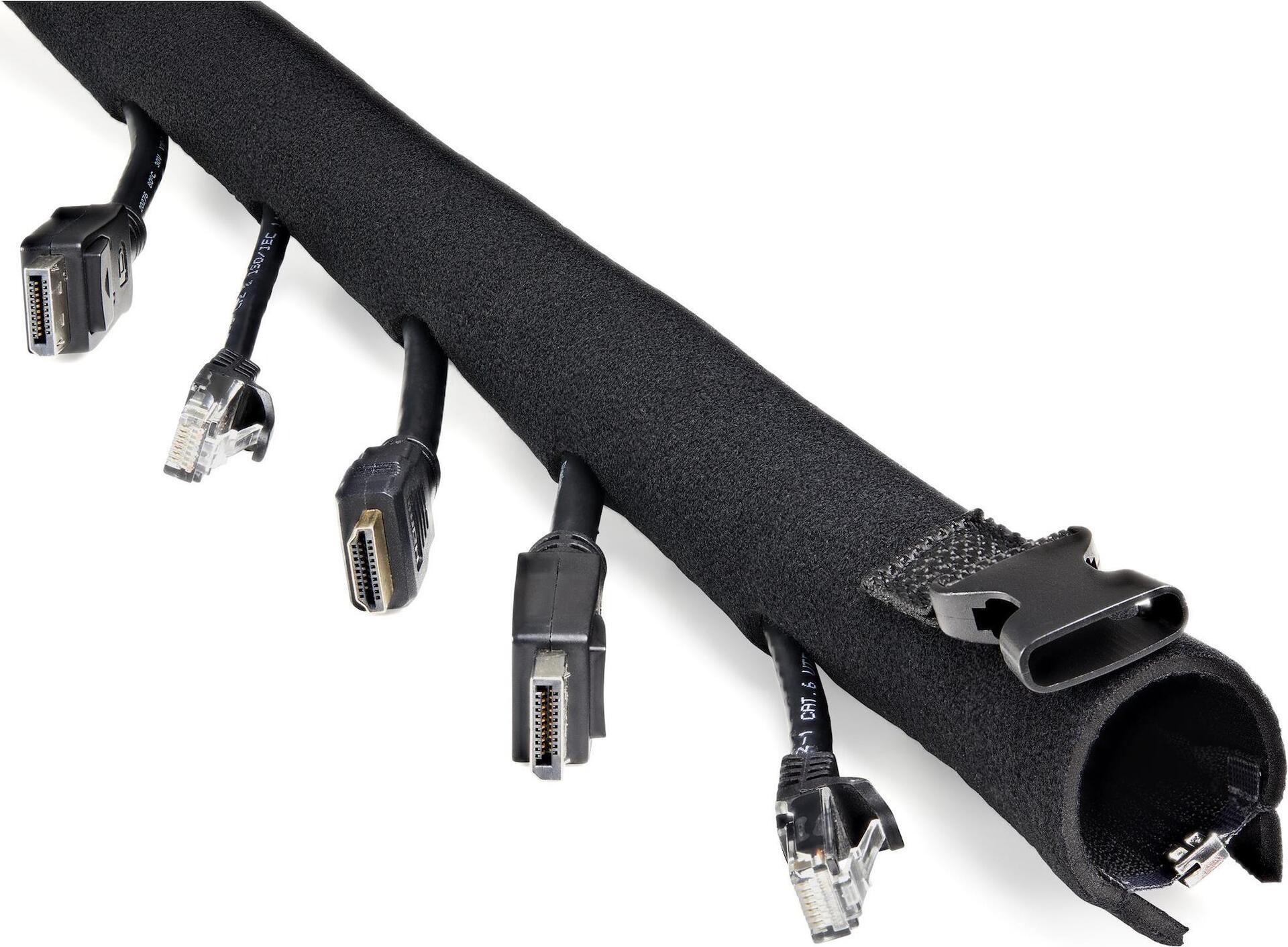 StarTech.com 101,60cm (40") (1m) Neoprene Cable Management Sleeve with Zipper & Buckle, 1.2" (3cm) Diameter, Computer/PC Power/Network/AV Cord Cover/Manager, Flexible Cable Organizer Wrap, Black - Cable Manager Sleeve (WKSTNCMZP) - Kabelmanagement-Tülle - Schwarz - 1 m