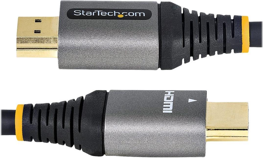 1m Premium zertifiziertes HDMI 2.0 Kabel - High Speed Ultra HD 4K 60Hz HDMI Kabel mit Ethernet - HDR10, ARC - UHD HDMI Videokabel - Für UHD Monitore, TVs, Displays - M/M (HDMMV1M).Produkttext[/head]Premium zertifiziertes HDMI 2.0 Kabel - 4k 60Hz - 1mDieses 1 m lange zertifizierte Premium HDMI 2.0 Hochgeschwindigkeitskabel erfüllt die täglichen Anforderungen beim Anschluss Ihrer HDMI-Geräte. Dieses robuste Kabel ist auf die Anforderungen von Business- und Heimanwendern ausgelegt und hält nachweislich anspruchsvollen Verschleißbedingungen stand.Erleben Sie HDMI 2.0 in seiner aktuellsten FormDieses leistungsstarke 4K HDMI Kabel unterstützt Auflösungen von bis zu 4K bei 60 Hz (3840 x 2160p) und Bandbreiten von bis zu 18 Gbit/s. Darüber hinaus unterstützt es HDR10 (High Dynamic Range) und Dolby Vision für ein besseres Kontrastverhältnis und lebendigere Farben.Außerdem verfügt ARC (Audio Return Channel) über bis zu 32 unkomprimierte 5.1 und 7.1 digitale Audiokanäle zur Unterstützung von DTS-HD Master Audio™; DTS:X®; Dolby® TrueHD und Dolby Atmos® für hochwertigen Sound.Mit hohen Auflösungen, höheren Geschwindigkeiten, schärferen Bildern und kristallklaren Audioausgaben erhalten Sie ein besseres Video-Erlebnis. Das Kabel bietet garantiert die beste aktuell verfügbare HDMI-4K-Leistung. Es ist perfekt für den Aufbau des ultimativen Heimkinos oder für lebensechten Digital Signage geeignet.Dieses Kabel funktioniert mit allen 8K-fähigen Geräten und ist auch mit früheren HDMI-Spezifikationen abwärtskompatibel.Hervorragende Verbindungen durch Premium-Hochgeschwindigkeits-ZertifizierungDas Kabel wurde strengen Konformitätsprüfungen unterzogen und von einem autorisierten HDMI-Testcenter zertifiziert, sodass es garantiert alle angegebenen Funktionen für hohe Bandbreiten unterstützt. Außerdem wurde auch ein Störausstrahlungs-Test durchgeführt, um sicherzustellen, dass Störungen drahtloser Signale minimiert werden.Hauptmerkmale des KabelsAluminium-Mylar-Folie mit geflochtener Abschirmung verbessert den EMI-SchutzLanglebige, flexible TPE-Ummantelung [[SDLENTITIREF[amp]]] Zugentlastung (TPE ist ungiftig [[SDLENTITIREF[amp]]]] halogenfrei für Umweltverträglichkeit)Hauptmerkmale des SteckverbindersKorrosionsfreie, vergoldete Steckverbinder sorgen für eine hochwertige Videoqualität [[SDLENTITIREF[amp]]] und höhere Zuverlässigkeit, Getestet für mehr als 10000 EinsteckvorgängeDas HDMMV1M fällt unter die lebenslange Garantie von StarTech.com.The StarTech.com Advantage[head]Hauptmerkmale