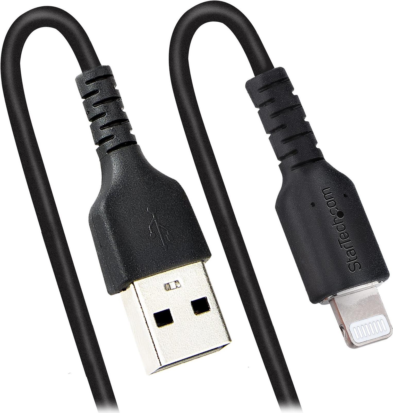 StarTech.com 1m USB auf Lightning Kabel - Spiralkabel - MFi zertifiziert - Schnellladekabel für iPhone/iPad - Schwarz - robuster TPE Mantel mit Aramidfaser - USB 2.0 Kabel - Laden und Synchronisieren (RUSB2ALT1MBC)