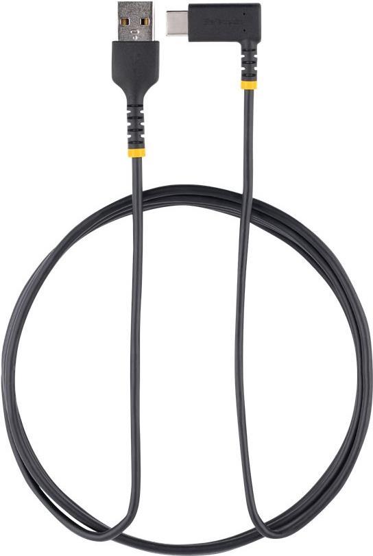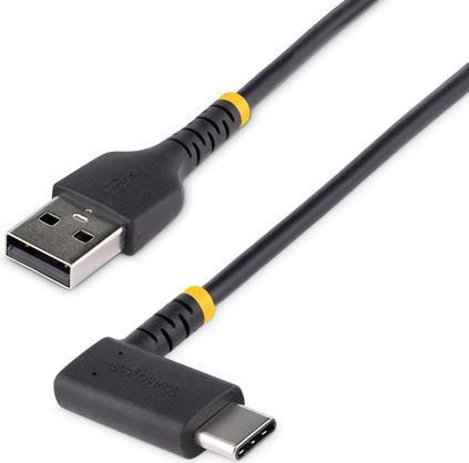 StarTech.com 6ft (2m) USB A to C Charging Cable Right Angle, Heavy Duty Fast Charge USB-C Cable, USB 2.0 A to Type-C, Durable and Rugged Aramid Fiber, 3A, S20/iPad/Pixel - High Quality USB Charging Cord (R2ACR-2M-USB-CABLE) - USB-Kabel - USB (M) gerade zu USB-C (M) rechtwinklig - Thunderbolt 3 / USB 2.0 - 3 A - 2 m - USB Power Delivery (60W) - Schwarz