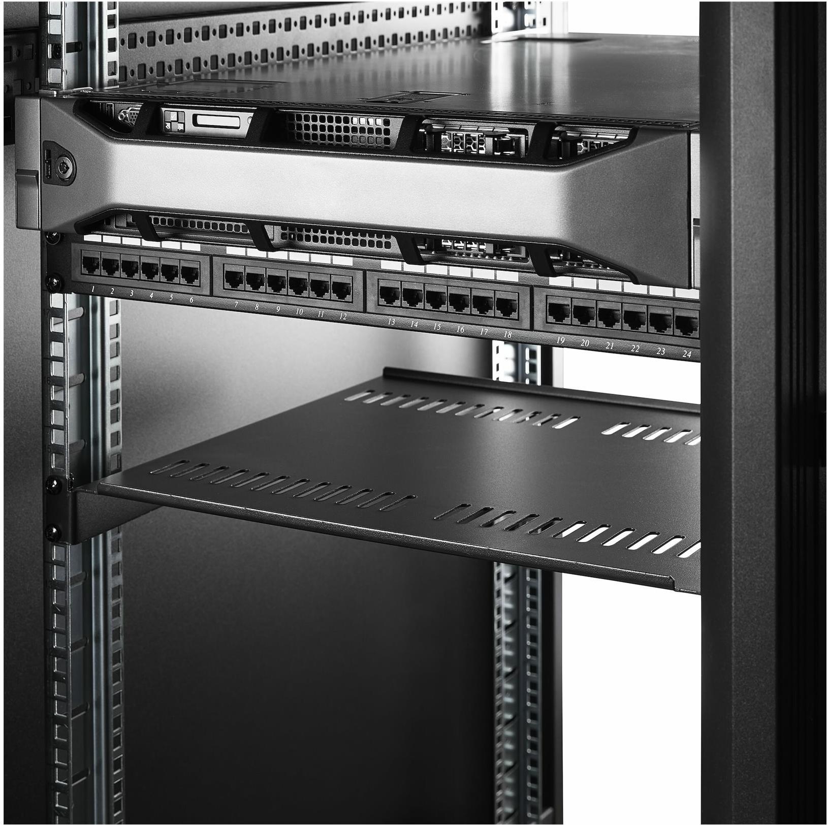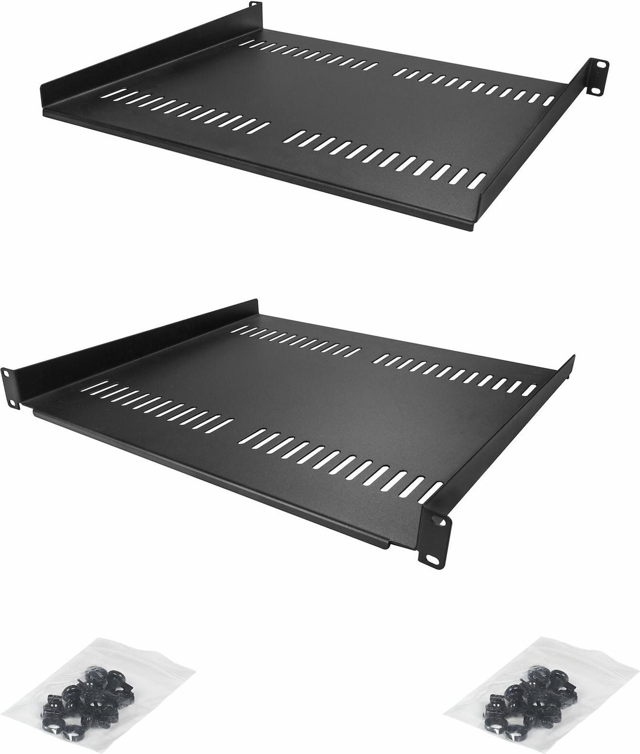 Das StarTech.com 2-Pack 1U Server-Rack-Regal, belüftet, mit einer Tragfähigkeit von 44 lb und einer Tiefe von 16" (CABSHELF116V2PK) bietet eine robuste Lösung zur Verbesserung der Lagerung und Organisation Ihrer Server. Die aus hochwertigem kaltgewalztem SPCC-Stahl gefertigten Regale sind für ein Gewicht von bis zu 20 kg ausgelegt und eignen sich daher für die sichere Aufbewahrung einer Vielzahl von Servergeräten. Das belüftete Design gewährleistet eine optimale Luftzirkulation, die für die Aufrechterhaltung der Leistung und Langlebigkeit Ihrer Geräte entscheidend ist, da sie eine Überhitzung verhindert. Jedes Regal ist so konzipiert, dass es in standardmäßige 19"-Racks passt und somit mit einer Vielzahl von Konfigurationen kompatibel ist. Das Paket enthält alle erforderlichen Montageteile, die den Installationsprozess vereinfachen und alles bereitstellen, was zur Befestigung der Regale erforderlich ist. Ganz gleich, ob Sie Ihr aktuelles System erweitern oder ein neues aufbauen möchten, diese Serverschrankregale von StarTech.com sind eine zuverlässige und effiziente Wahl.