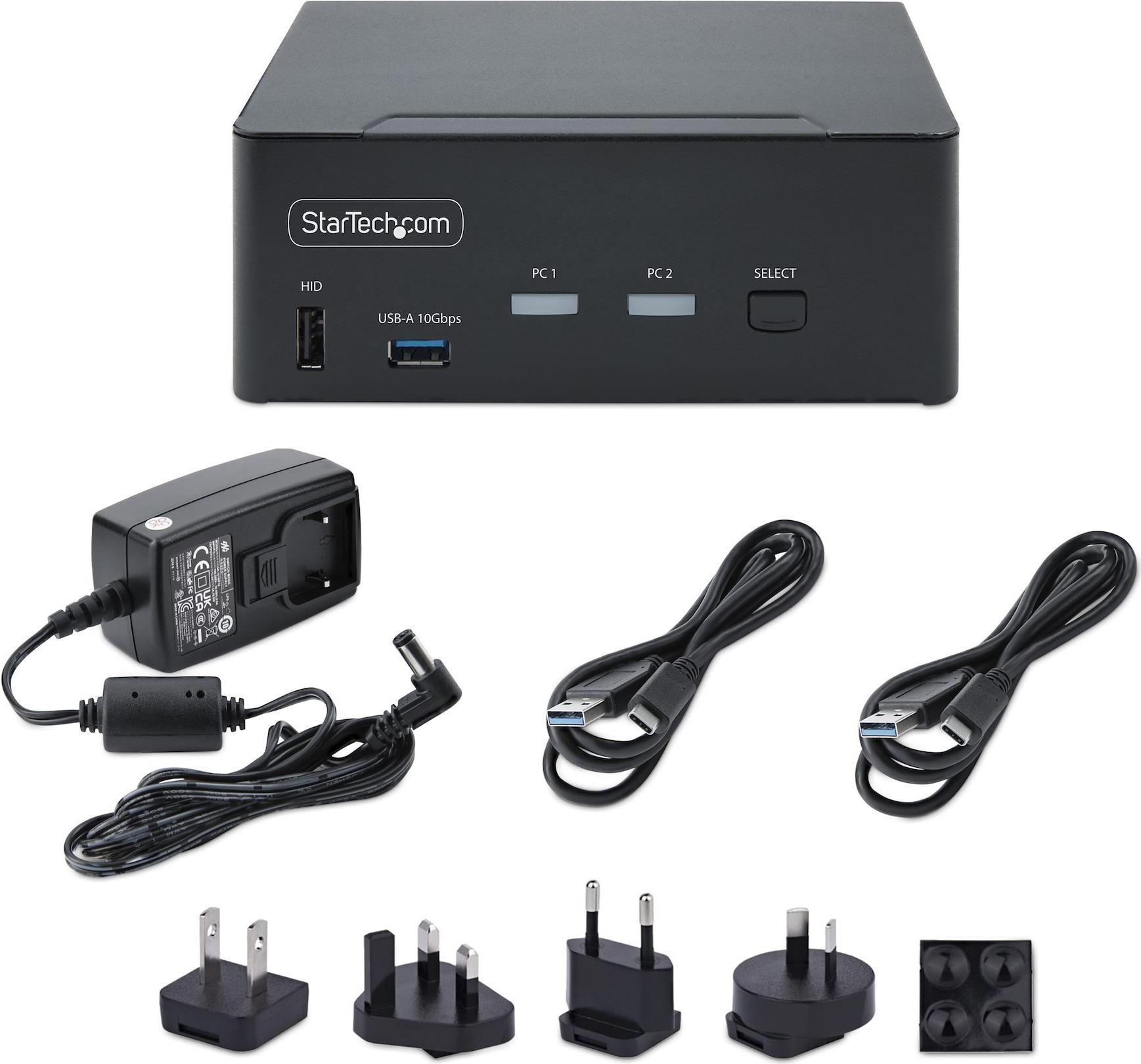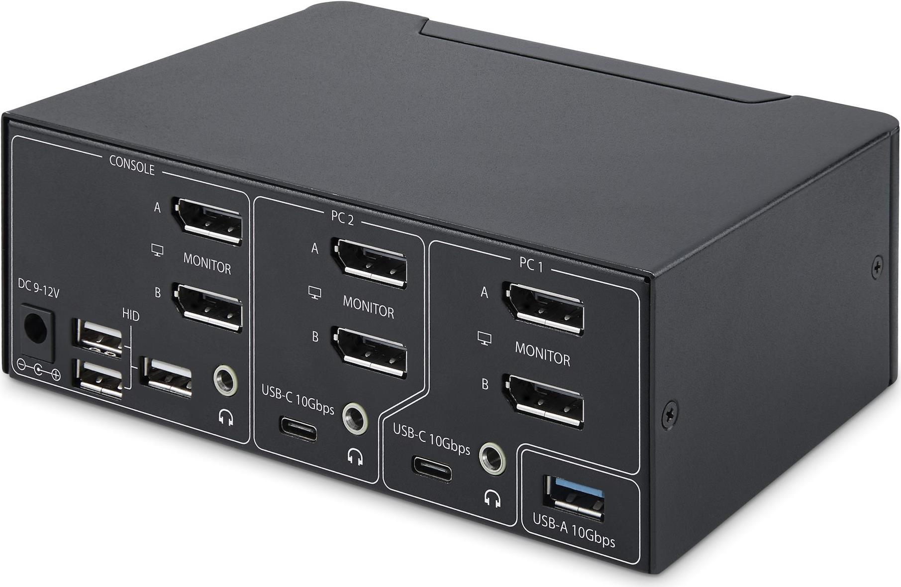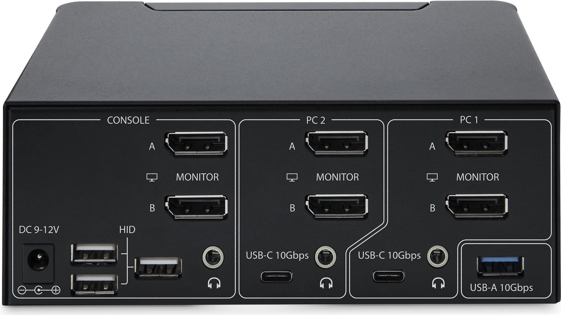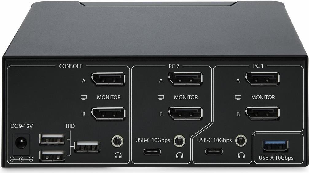Dieser KVM-Umschalter für zwei Monitore ermöglicht es Benutzern, zwischen zwei USB- und DisplayPort-fähigen Desktops umzuschalten. Er ermöglicht die gemeinsame Nutzung von zwei 8K 60Hz DisplayPort-Monitoren, einer Tastatur und Maus sowie zwei USB 10Gbps-Geräten.
