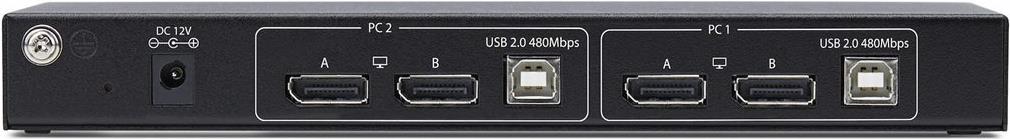 Verwenden Sie eine Maus, eine Tastatur, einen USB-Hub und zwei 4K 60Hz DisplayPort-Monitore gemeinsam mit zwei DisplayPort-fähigen Computern, einschließlich Dual-View-Videomatrix-Funktionen