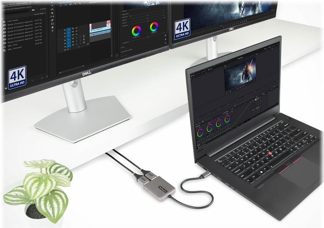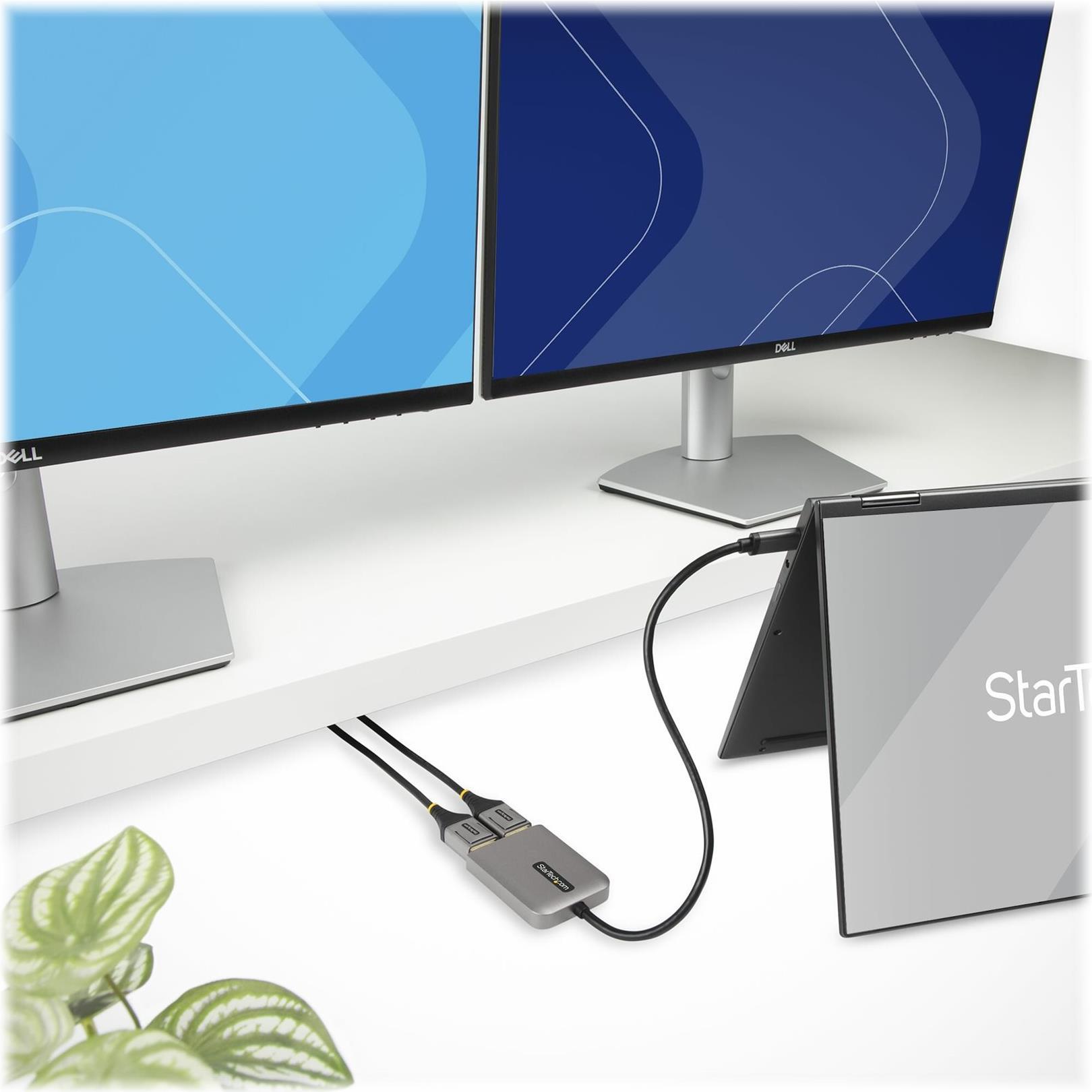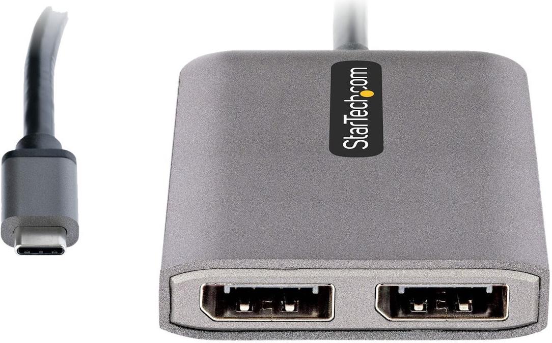 Dieser USB-C to DisplayPort MST Hub ermöglicht den Anschluss an zwei DisplayPort Bildschirme über ein DisplayPort Alternate Mode (DP Alt Mode) fähiges USB-C Host Gerät.