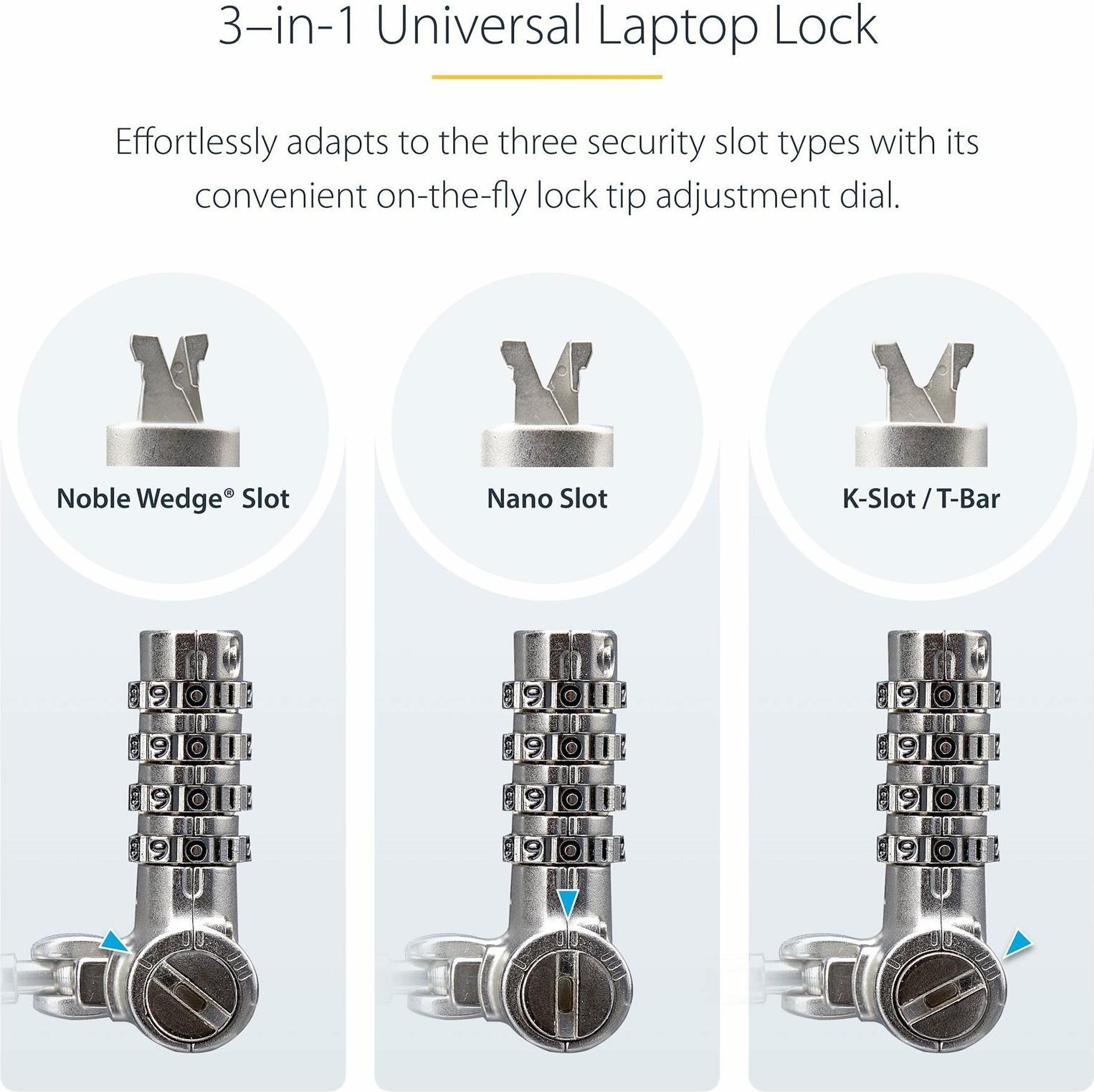 Sichern Sie einen Laptop, eine Dockingstation oder andere Peripheriegeräte mit diesem 3-in-1 serialisierten Kombinationskabelschloss