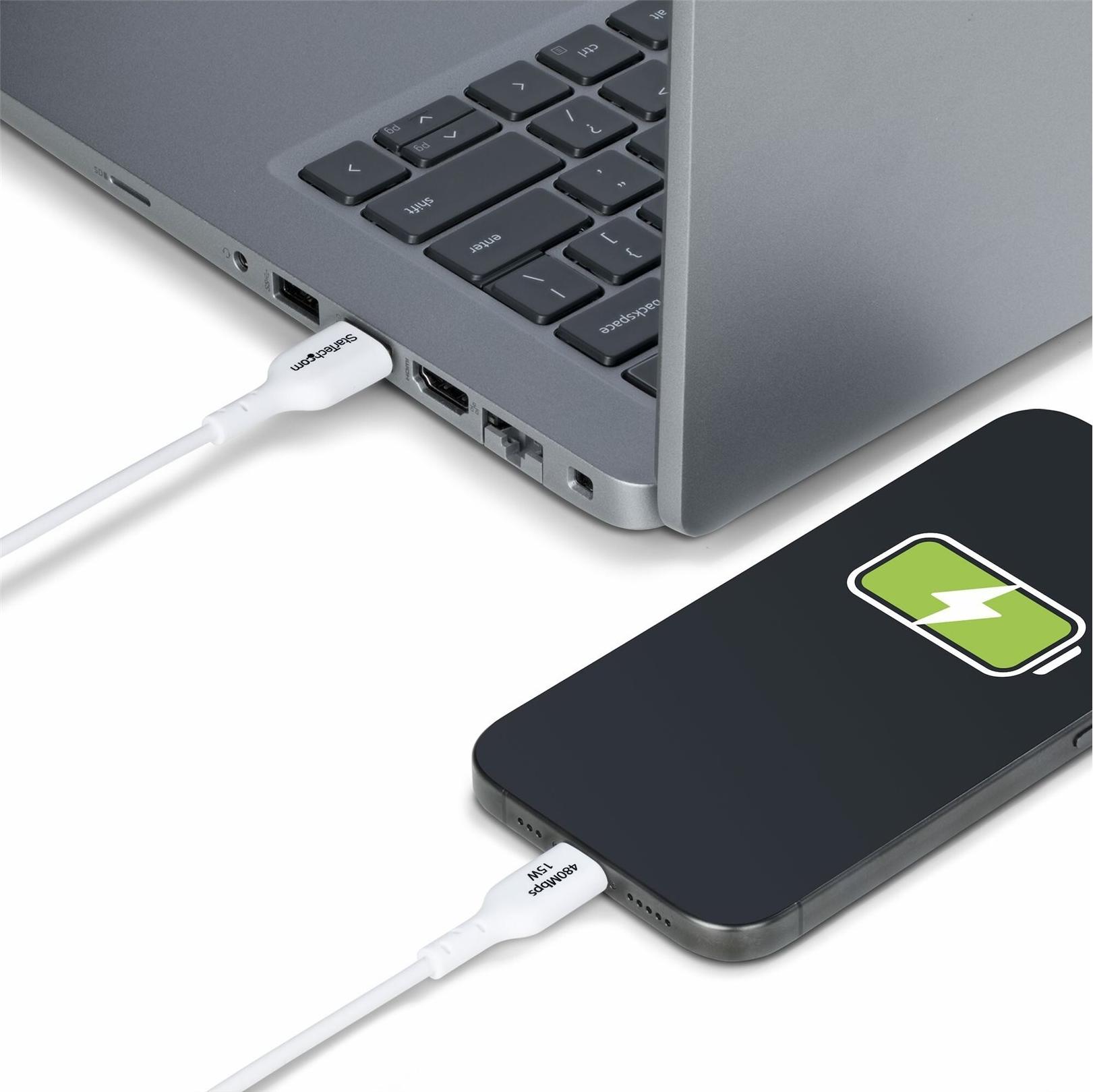 Mit einer Ausgangsleistung von bis zu 3A kann das USB-C Ladekabel ein Smartphone oder Tablet schnell aufladen. Verbinden Sie das Kabel von einem USB-C Gerät mit einem USB-A Wandladegerät.