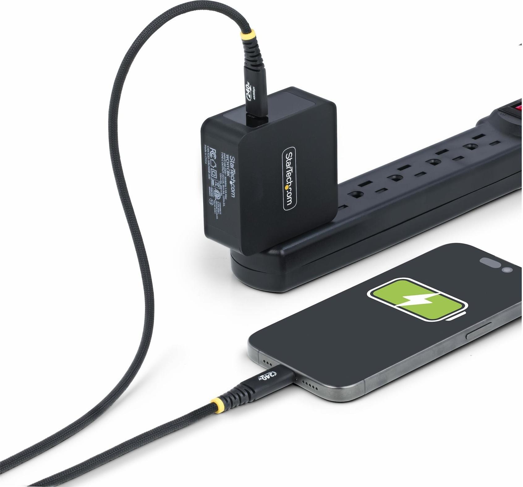 Mit einer Ausgangsleistung von bis zu 5A unterstützt das USB-C-Ladekabel bis zu 240W Power Delivery zum Aufladen eines USB-C-Laptops oder zum Schnellladen eines Tablets oder Smartphones. Verbinden Sie das Kabel von einem USB-C-Laptop mit einem USB-C-Wandladegerät.