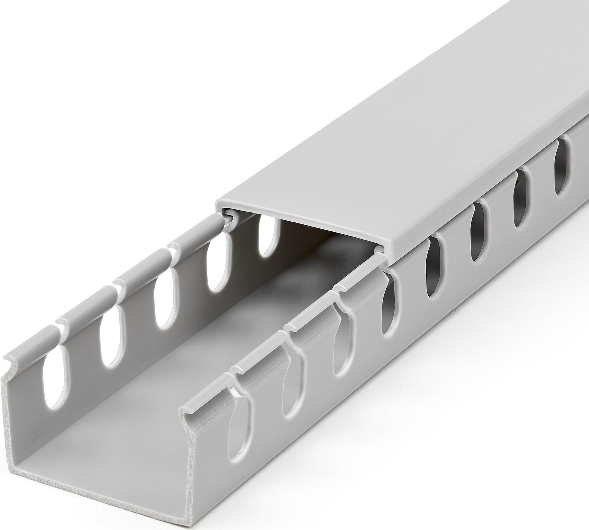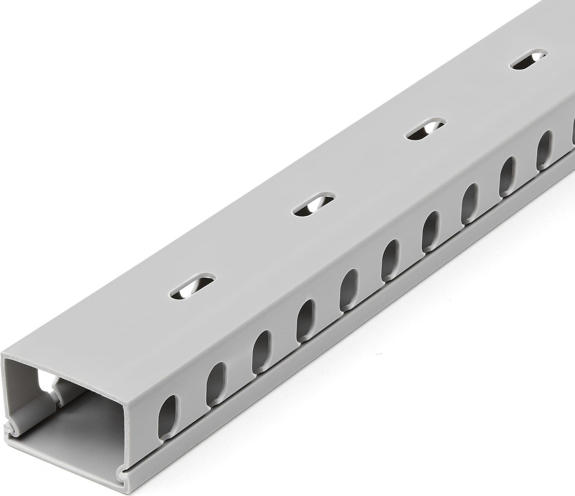 StarTech.com Open Slot Cable Management Raceway with Cover, 1-1/2"(38mm)W x 2,50cm (1")(25mm)H, 6.5ft(2m) length, 1/4"(8mm) Slots, PVC Network Cable Hider/Wall Wire Duct, Max 20 Cables, UL Listed - UL94 V0, M1 Fire Rated (CBMWD3825) - Kabeltrasse - 2 m - Grau - TAA-konform