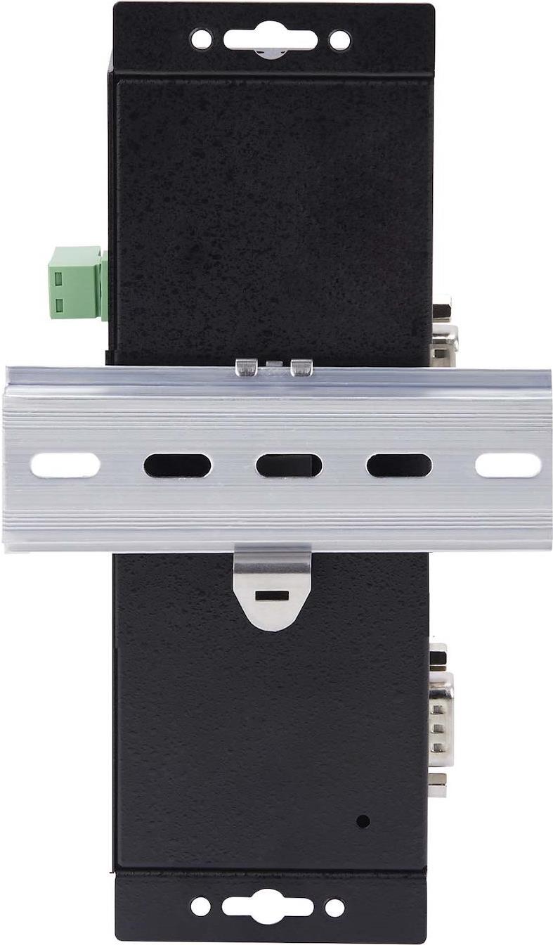 Zwei Stromversorgungsoptionen, eine Gleichstrombuchse und eine Klemmleiste, bieten Flexibilität und Komfort bei der Installation. Der Konverter ist in einem Vollmetallgehäuse untergebracht, das auch in rauen Umgebungen beständig ist. Der DB9 über IP-Konverter wird mit allen erforderlichen Befestigungselementen für Wand und DIN-Schiene geliefert. Mehrere Montagelöcher entlang des Gehäuses ermöglichen die Installation in der für die jeweilige Anwendung am besten geeigneten Ausrichtung. Abmessungen von 7x2.3x0.9in (178x59.4x23mm).