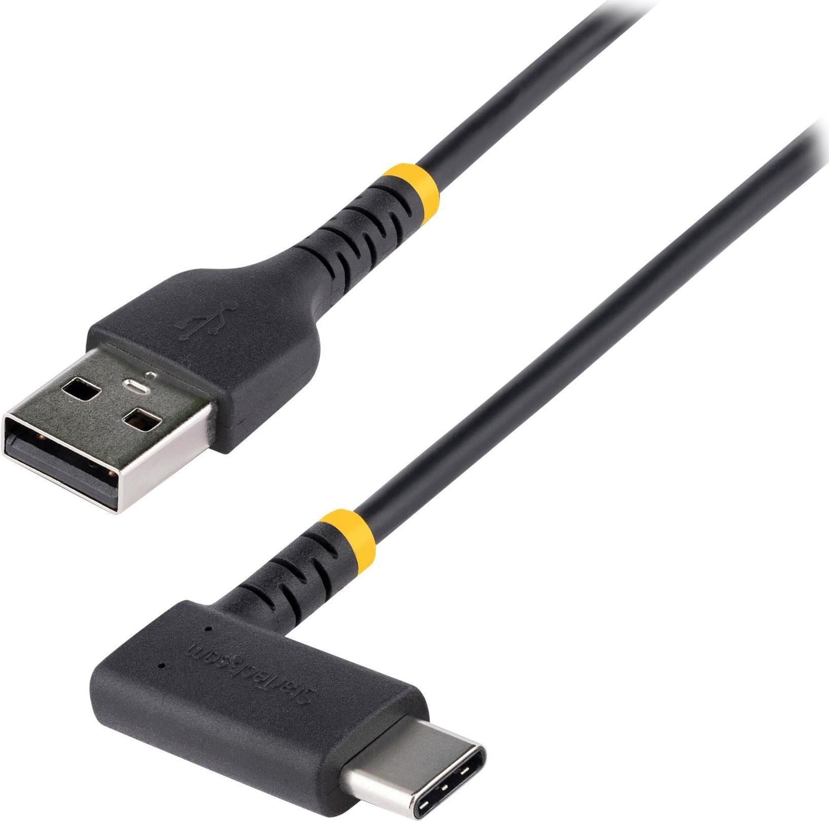 StarTech.com 1ft (30cm) USB A to C Charging Cable Right Angle, Heavy Duty Fast Charge USB-C Cable, USB 2.0 A to Type-C, Durable and Rugged Aramid Fiber, 3A, S20/iPad/Pixel - High Quality USB Charging Cord (R2ACR-30C-USB-CABLE) - USB-Kabel - USB (M) gerade zu USB-C (M) rechtwinklig - Thunderbolt 3 / USB 2.0 - 3 A - 30 cm - Schwarz