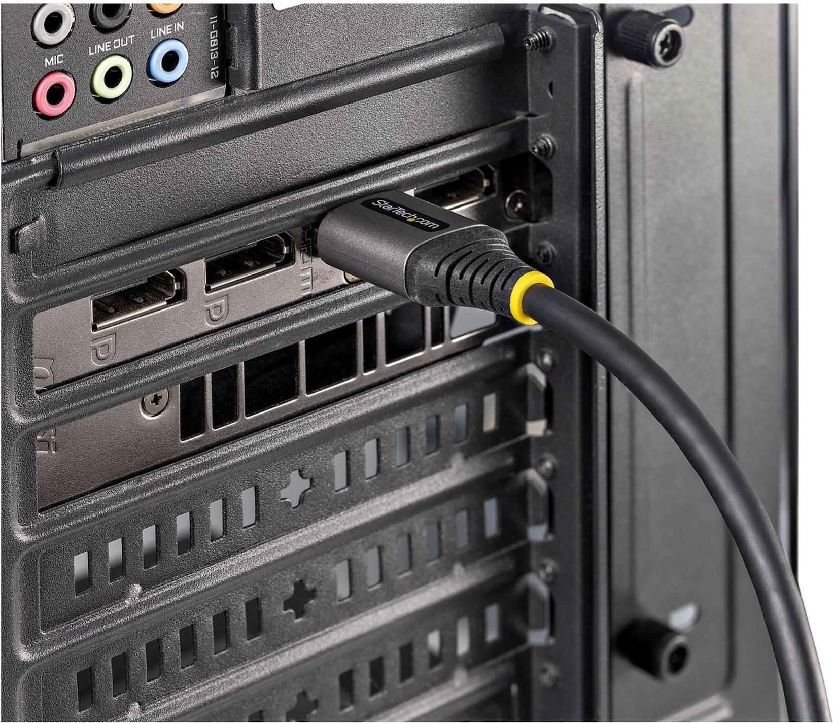 3m Premium zertifiziertes HDMI 2.0 Kabel - High Speed Ultra HD 4K 60Hz HDMI Kabel mit Ethernet - HDR10, ARC - UHD HDMI Videokabel - Für UHD Monitore, TVs, Displays - M/M (HDMMV3M).Produkttext[/head]Premium zertifiziertes HDMI 2.0 Kabel - 4k 60Hz - 3mDieses 3 m lange zertifizierte Premium HDMI 2.0 Hochgeschwindigkeitskabel erfüllt die täglichen Anforderungen beim Anschluss Ihrer HDMI-Geräte. Dieses robuste Kabel ist auf die Anforderungen von Business- und Heimanwendern ausgelegt und hält nachweislich anspruchsvollen Verschleißbedingungen stand.Erleben Sie HDMI 2.0 in seiner aktuellsten FormDieses leistungsstarke 4K HDMI Kabel unterstützt Auflösungen von bis zu 4K bei 60 Hz (3840 x 2160p) und Bandbreiten von bis zu 18 Gbit/s. Darüber hinaus unterstützt es HDR10 (High Dynamic Range) und Dolby Vision für ein besseres Kontrastverhältnis und lebendigere Farben.Außerdem verfügt ARC (Audio Return Channel) über bis zu 32 unkomprimierte 5.1 und 7.1 digitale Audiokanäle zur Unterstützung von DTS-HD Master Audio™; DTS:X®; Dolby® TrueHD und Dolby Atmos® für hochwertigen Sound.Mit hohen Auflösungen, höheren Geschwindigkeiten, schärferen Bildern und kristallklaren Audioausgaben erhalten Sie ein besseres Video-Erlebnis. Das Kabel bietet garantiert die beste aktuell verfügbare HDMI-4K-Leistung. Es ist perfekt für den Aufbau des ultimativen Heimkinos oder für lebensechten Digital Signage geeignet.Dieses Kabel funktioniert mit allen 4K-fähigen Geräten und ist auch mit früheren HDMI-Spezifikationen abwärtskompatibel.Hervorragende Verbindungen durch Premium-Hochgeschwindigkeits-ZertifizierungDas Kabel wurde strengen Konformitätsprüfungen unterzogen und von einem autorisierten HDMI-Testcenter zertifiziert, sodass es garantiert alle angegebenen Funktionen für hohe Bandbreiten unterstützt. Außerdem wurde auch ein Störausstrahlungs-Test durchgeführt, um sicherzustellen, dass Störungen drahtloser Signale minimiert werden.Hauptmerkmale des KabelsAluminium-Mylar-Folie mit geflochtener Abschirmung verbessert den EMI-SchutzLanglebige, flexible TPE-Ummantelung [[SDLENTITIREF[amp]]] Zugentlastung (TPE ist ungiftig [[SDLENTITIREF[amp]]]] halogenfrei für Umweltverträglichkeit)Hauptmerkmale des SteckverbindersKorrosionsfreie, vergoldete Steckverbinder sorgen für eine hochwertige Videoqualität [[SDLENTITIREF[amp]]] und höhere Zuverlässigkeit, Getestet für mehr als 10000 EinsteckvorgängeDas HDMMV3M fällt unter die lebenslange Garantie von StarTech.com.The StarTech.com Advantage[head]Hauptmerkmale
