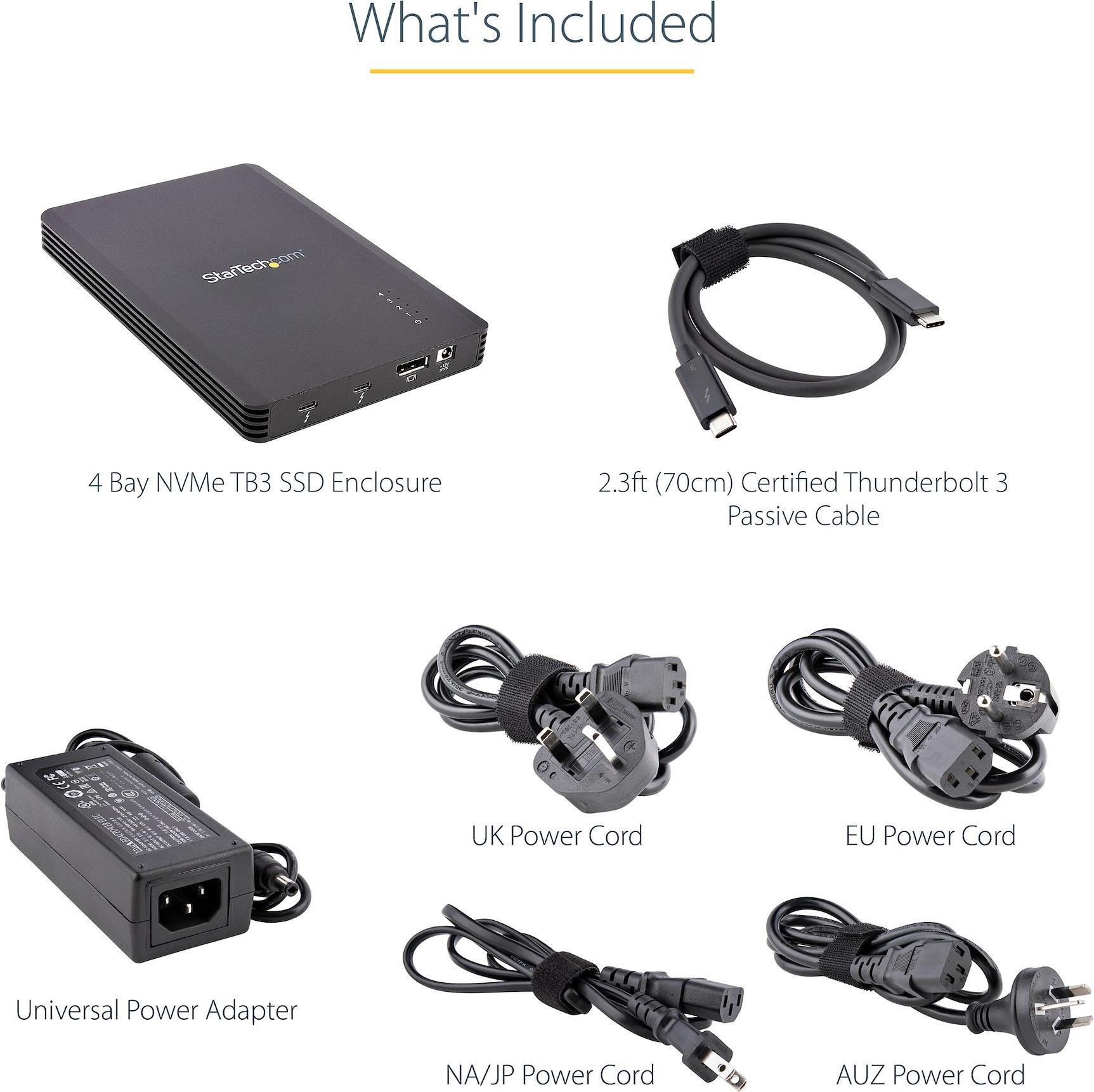 PCIe M.2 Gehäuse für 4 Laufwerke - Thunderbolt 3 - 72 W EPS Netzteil & 70 cm Thunderbolt 3 Kabel inklusive