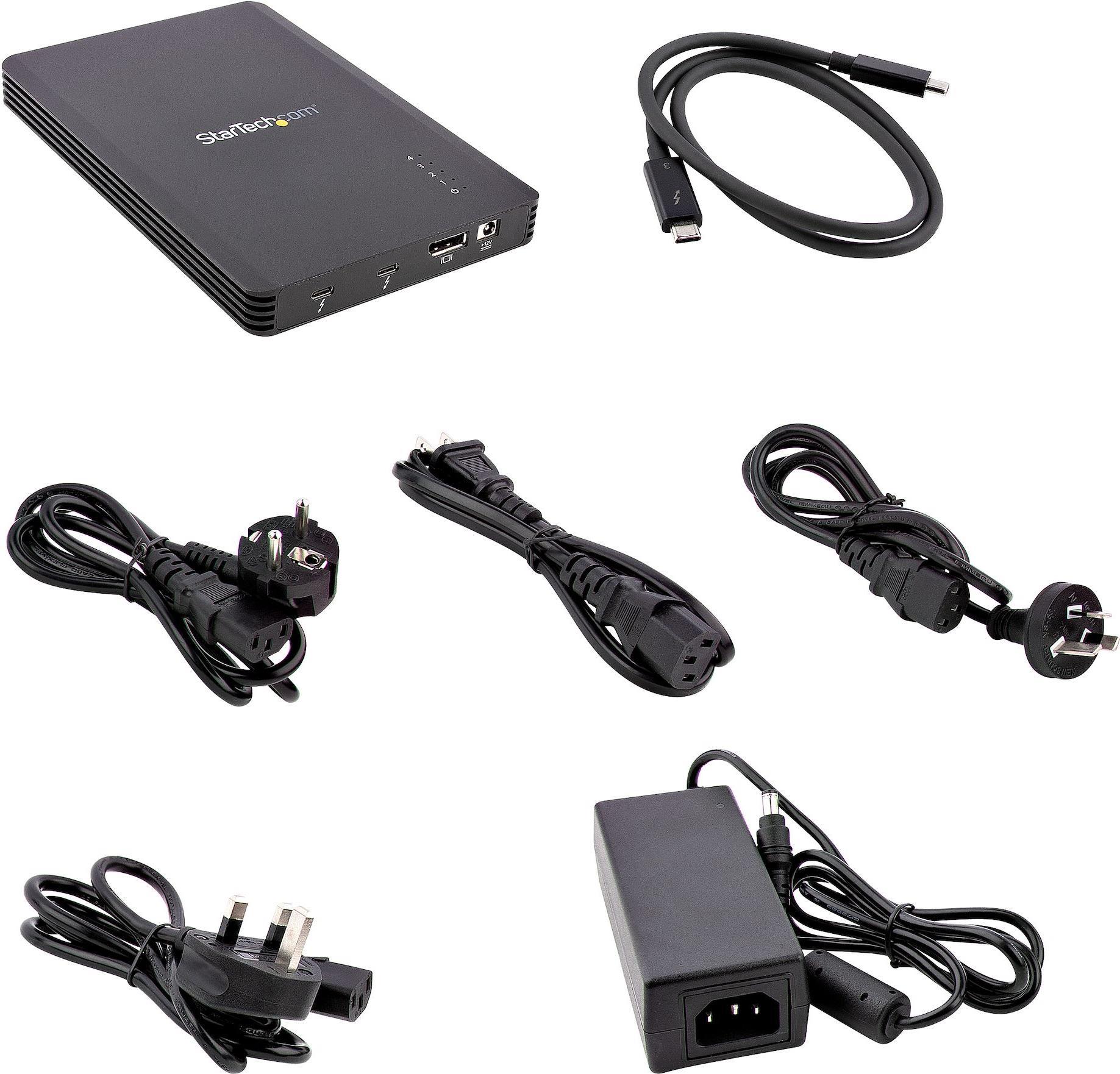 Das Gehäuse verfügt über einen DisplayPort Ausgang, über den Sie einen DisplayPort Bildschirm mit Auflösungen von bis zu 4K 60Hz über das Thunderbolt 3 Gehäuse mit Ihrem Computer verbinden können. Das Gehäuse verfügt außerdem über einen Downstream Thunderbolt 3 Port für die Verbindung mit einem zusätzlichen TB3 Gerät oder einen zusätzlichen TB3 kompatiblen Bildschirm(bis zum 5K 60Hz).