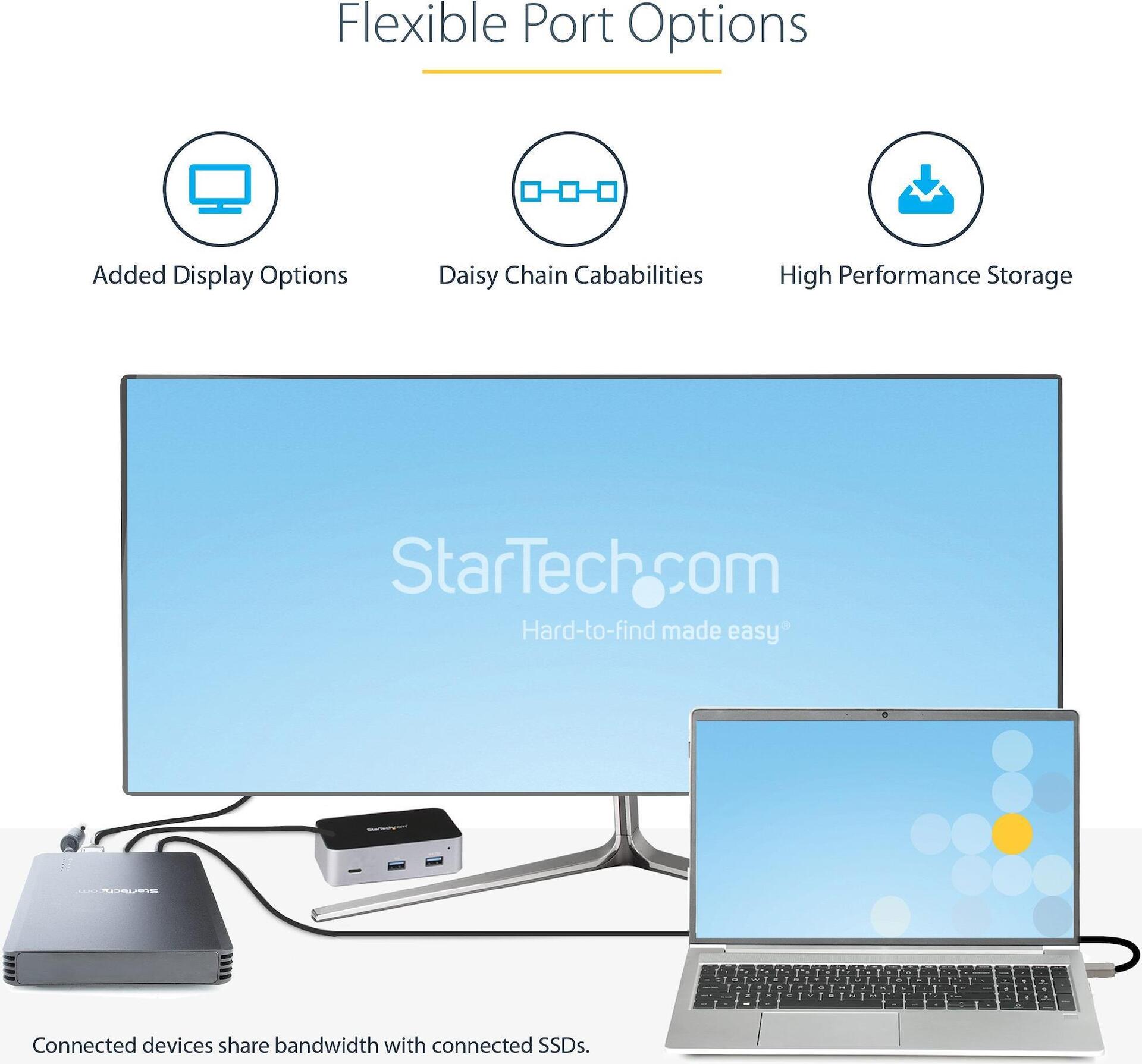 • Angeschlossene Downstream-Geräte teilen sich die Bandbreite mit angeschlossenen SSDs und können die Gesamtleistung der Datenübertragung verringern, wenn sie verbunden sind.