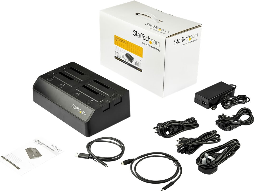 | Produktbeschreibung | StarTech.com 4 Bay SATA 2.5 / 3.5" SSD / HDD Dock - USB 3.1 USB-C / USB-A - Speichergehäuse - SATA 6Gb/s - USB 3.1 (Gen 2) |