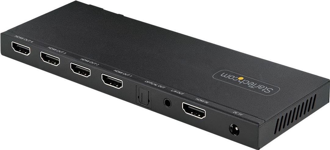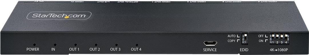 | Produktbeschreibung | StarTech.com 4-Port HDMI Splitter, 4K 60Hz HDMI 2.0 Video, 2,50cm (1") 4 Out HDMI Splitter, 4K HDMI Splitter w/Built-in Scaler, 3.5mm/Optical Audio Port, Durable Metal Housing, HDR/HDCP - 1x4 HDMI Display/Output Splitter (HDMI-SPLITTER-44K60S) - Video-/Audio-Splitter - 4 Anschlüsse |