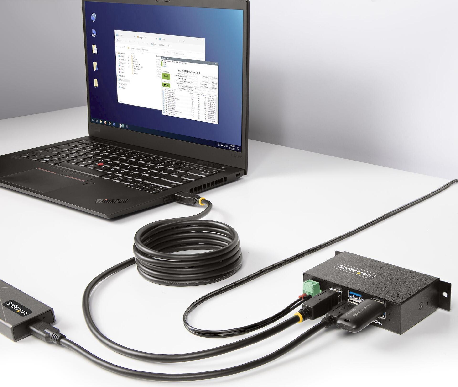 StarTech.com 4-Port Managed USB Hub with 4x USB-A, Heavy Duty with Metal Industrial Housing, ESD & Surge Protection, Wall/Desk/Din-Rail Mountable, USB 3.0/3.1/3.2 Gen 1 5Gbps - Hub - 3 x USB 3.2 Gen 2 + 1 x USB 3.2 Gen 1 - Desktop, an DIN-Schiene montierb (5G4AINDRM-USB-A-HUB)