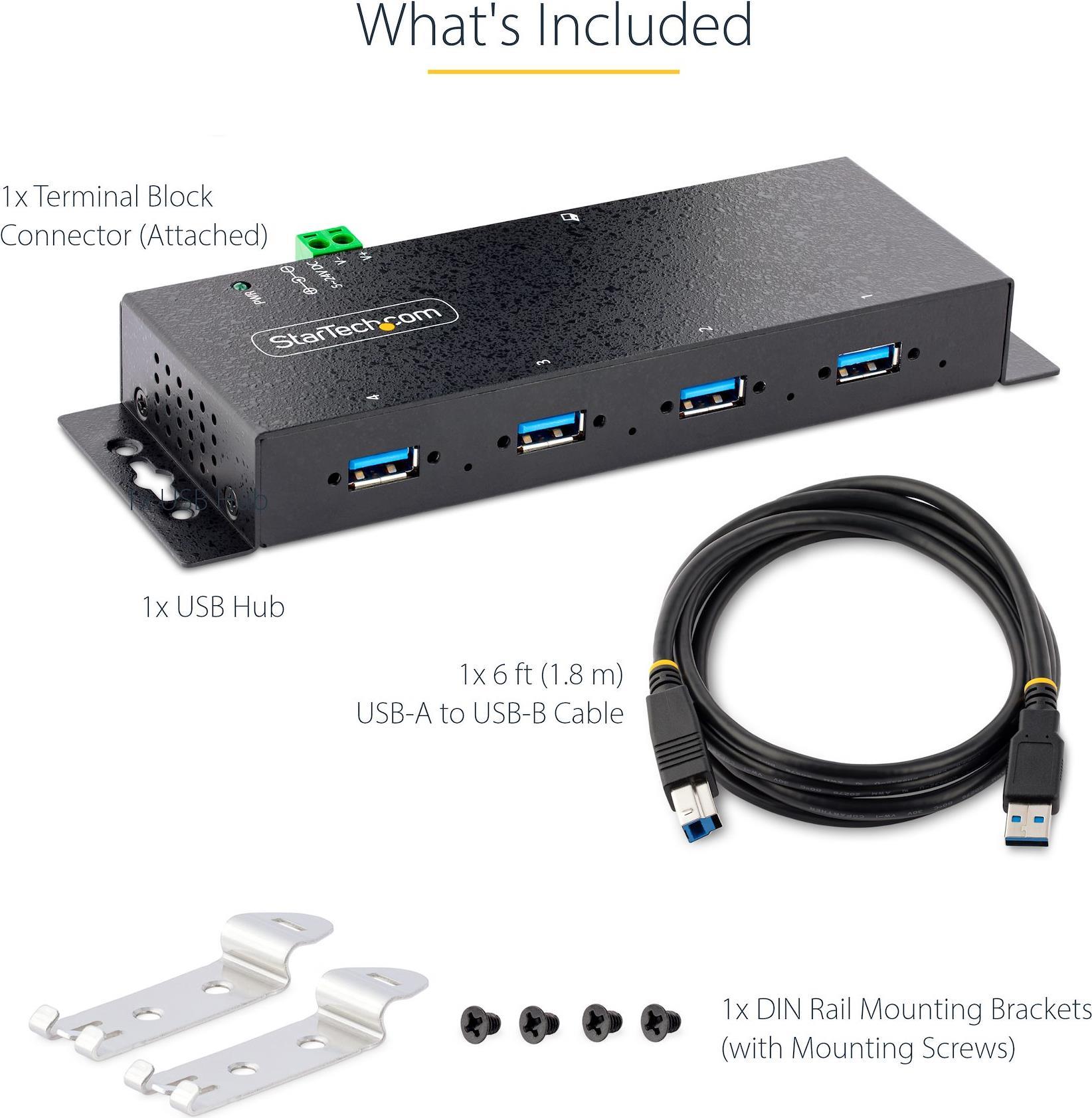 Erhöhen Sie die USB Skalierbarkeit in industriellen Umgebungen, Produkt- und Reparaturlabors, Konferenzräumen oder an Büroarbeitsplätzen mit diesem 4-Port USB Hub.