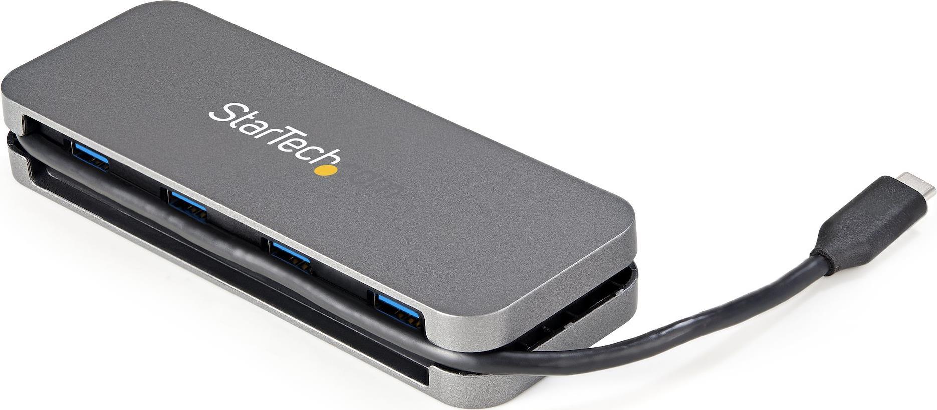 Mit diesem USB-C Hub mit 4 Anschlüssen können Sie vier SuperSpeed USB 3.2 Gen 1 (5 Gbit/s) Peripheriegeräte an Ihren USB-C Laptop oder Computer anschließen. Dies ist eine ideale Lösung, um einem Gerät mit begrenzten USB-Anschlüssen weitere hinzuzufügen. Er verfügt über einen Kabelmanager zum Wickeln, dadurch können Sie das integrierte Kabel einfach verstauen und somit mobil bleiben.