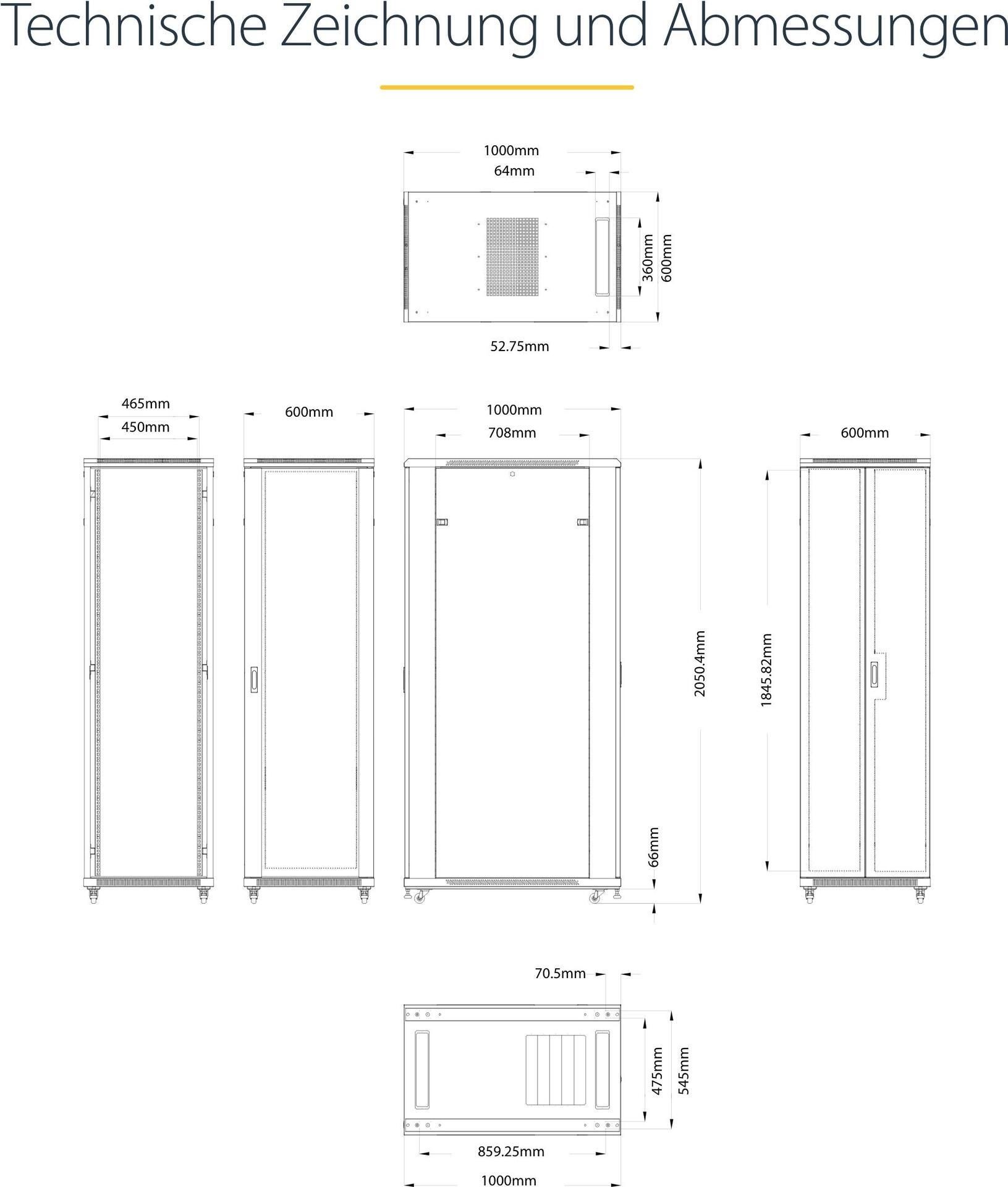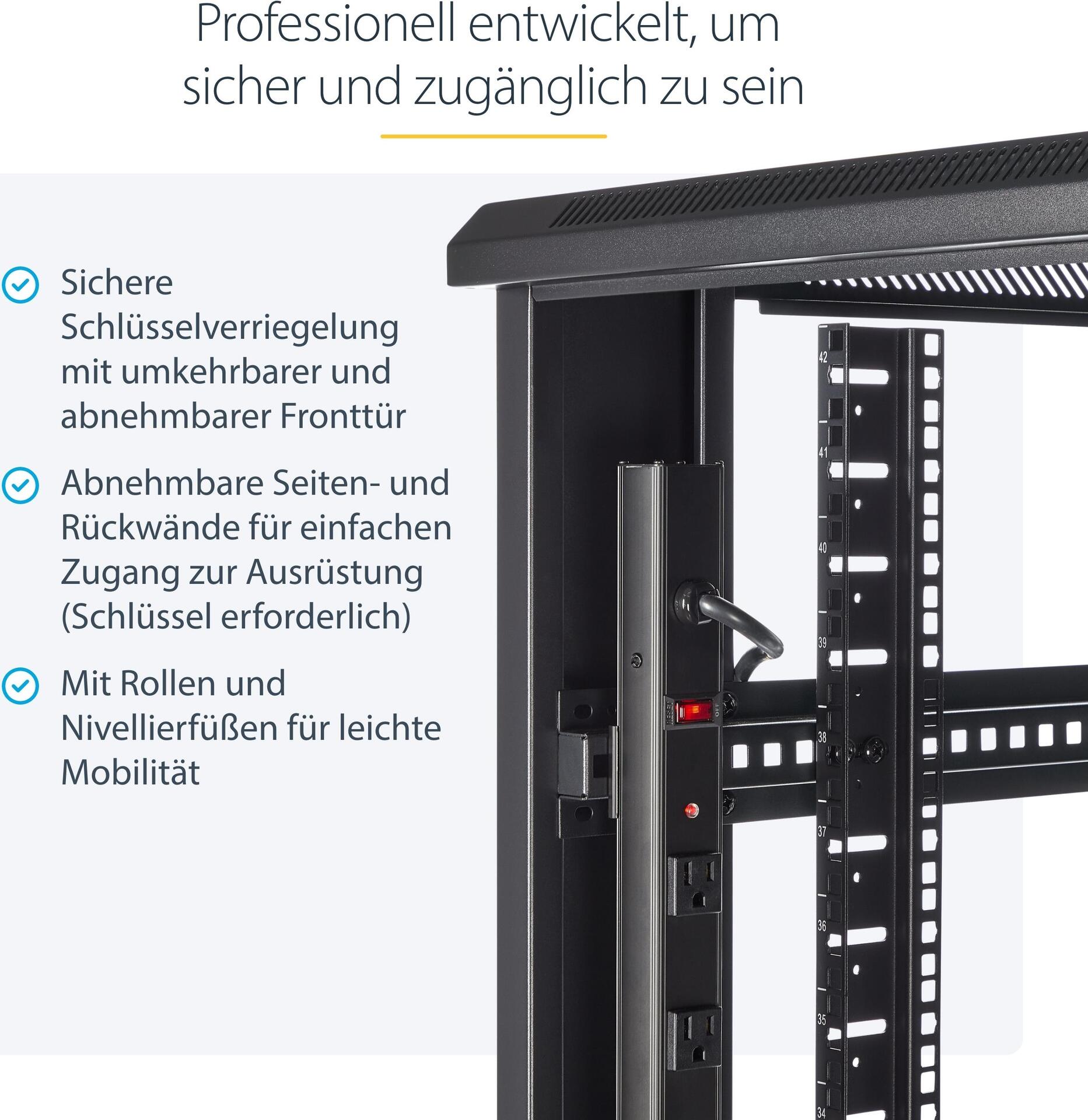 StarTech.com 42U Server Rack Cabinet - 4-Post Adjustable Depth (5.9" to 36.4") IT Network Equipment Rack Enclosure with Casters - 2000lbs (RK4236BKB) - Schrank Netzwerkschrank - bodenstehend - Schwarz - 42HE - 48.3 cm (19") (RK4236BKB)