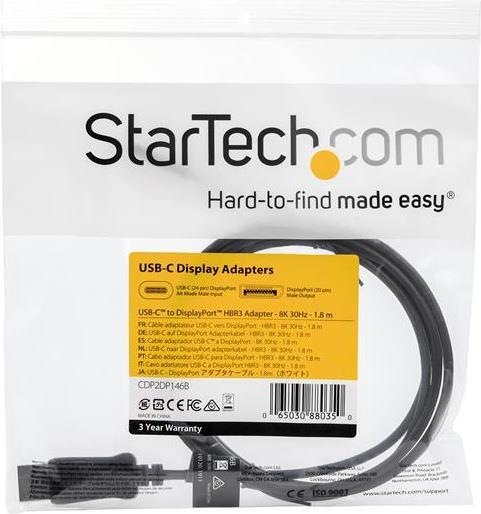 StarTech.com 1,8 m - USB-C auf DisplayPort-Kabel - 8K 30Hz - HBR3 - USB-C-Adapter - Thunderbolt 3-kompatibel - CDP2DP146B - externer Videoadapter - Schwarz |