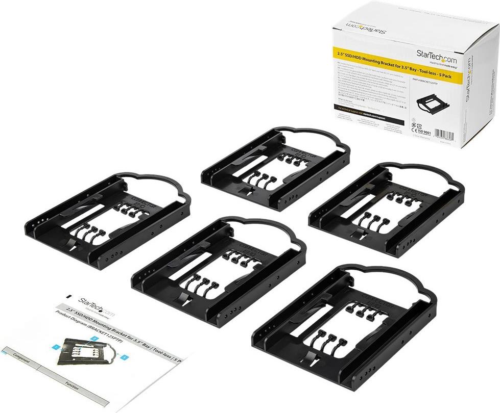 StarTech.com BRACKET125PTP Montageschiene für 3.5" Laufwerksschacht (5er Pack, 2.5" SSD/HDD, werkzeuglose Installation) - Speichereinschubadapter - 3.5" auf 2.5" (8.9 cm to 6.4 cm) - Schwarz (Packung mit 5)